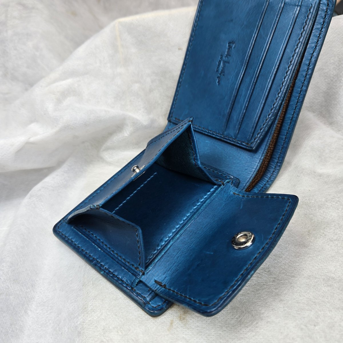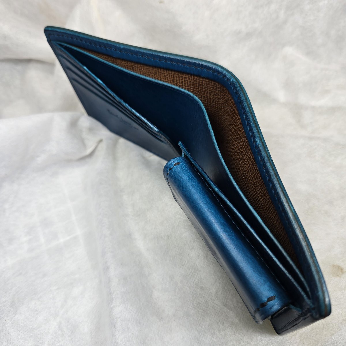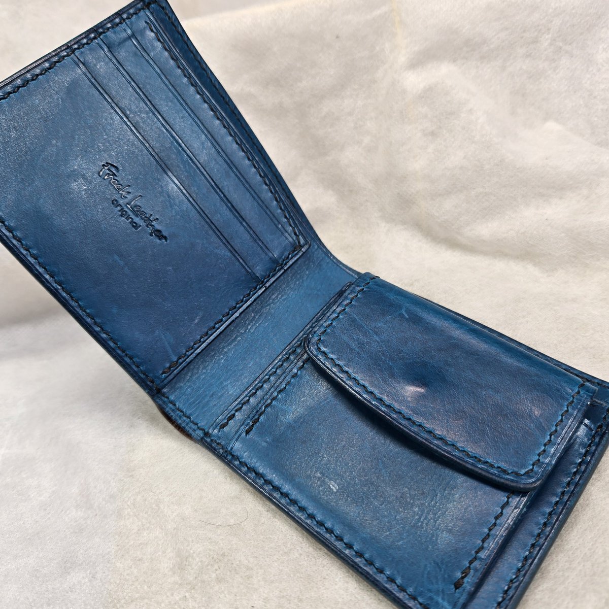 イタリアンレザー、リネアヴァスカを使ったのオーソドックスなスタイルの二つ折り財布 外装は革の繊維に沿って手揉みで表情をつけ、内装はスムースレザーのまま #レザークラフト #革財布 #ビルフォード #二つ折り財布 #革小物 pic.x.com/bBrJO2gY1i