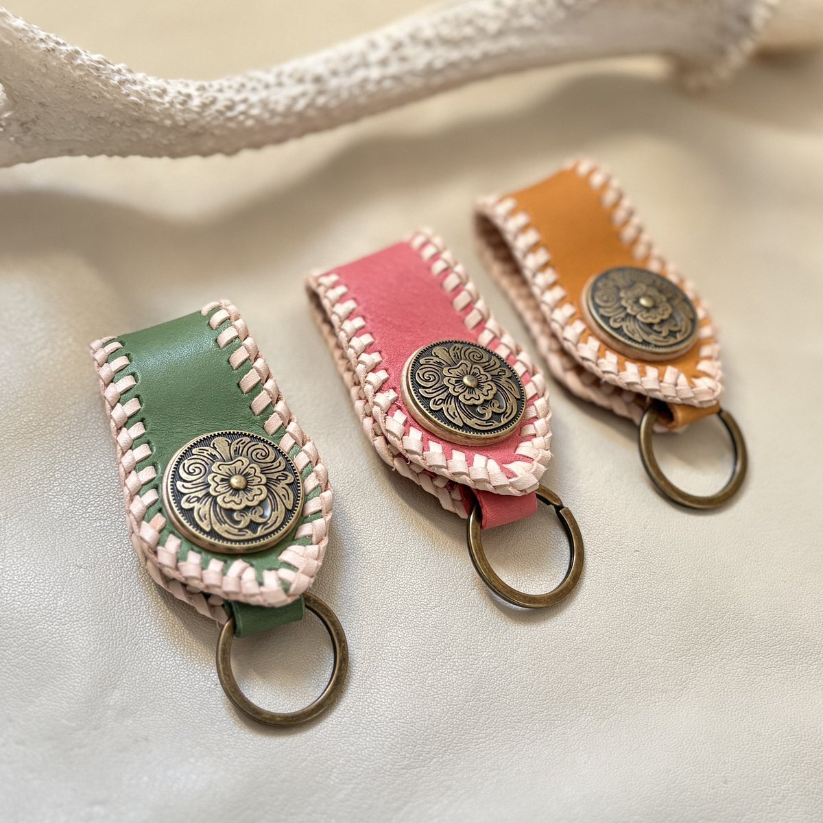 ベルトループキーホルダー 牛ヌメ革、牛ナチュラルレース 牛レースのかがり縫いがカッコイイ!! 私はバッグの紐に付けて、いろいろジャラジャラ付けてます😀 丈夫でカッコよくて、とってもオススメですよー✨ #diy #レザー #レザークラフト #ハンドメイド #革小物 pic.x.com/25ykOZ4vMH