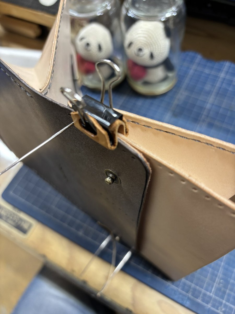 仕事の合間にレザークラフト ドッキング開始😀 今日は右手首が痛いギター練習のせいかな?趣味を続けるのも楽じゃない🤣 #レザークラフト #ハンドメイド #革小物 pic.x.com/SayJ6Niyha