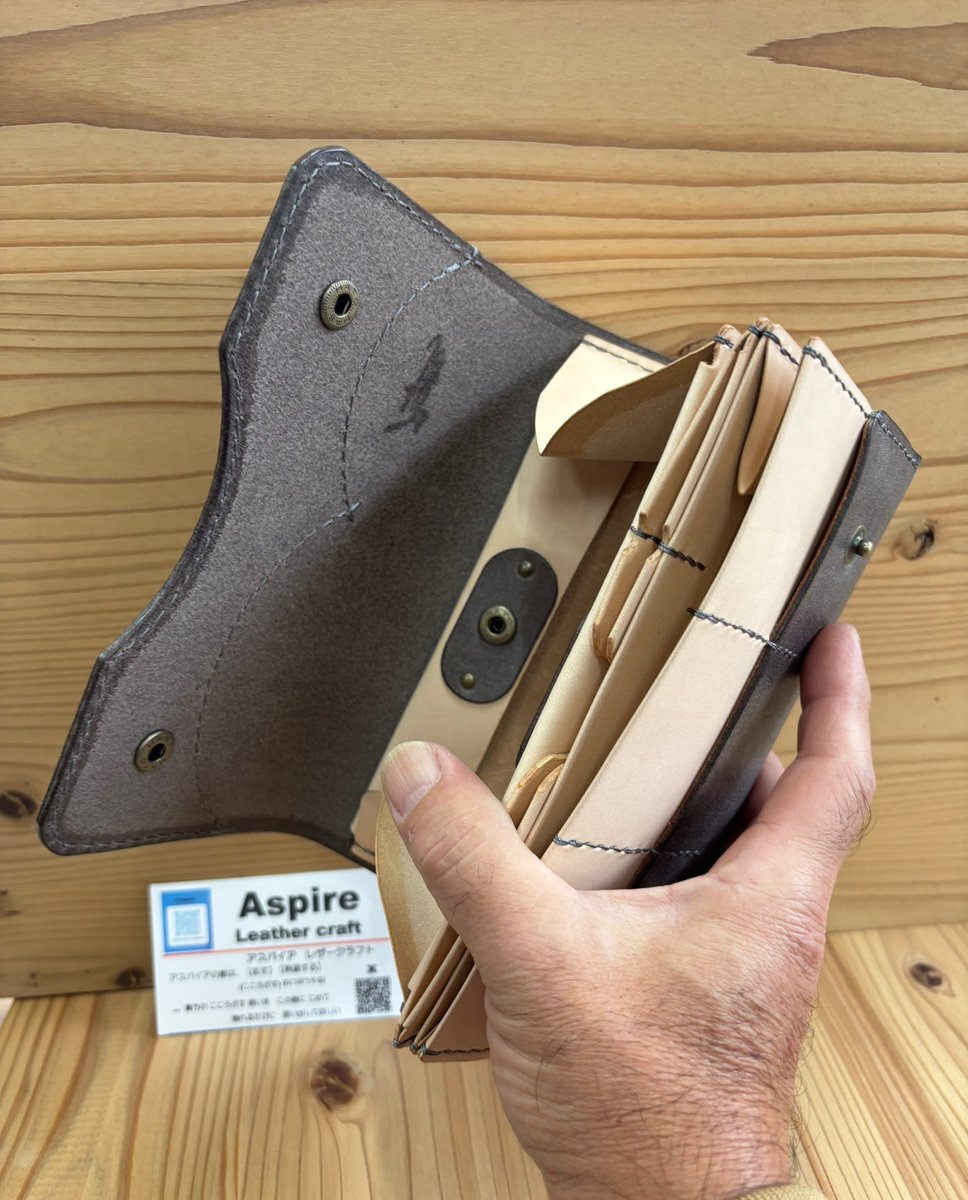 #仕事の合間にレザークラフト 小銭の見やすい長財布 ロロマレザー/サーペンダイン&シルバーグレーステッチ㊗️完成〜 落ち着いたいい色😌 #レザークラフト #ハンドメイド #革小物 #財布 pic.x.com/9tE9Mf2YBm