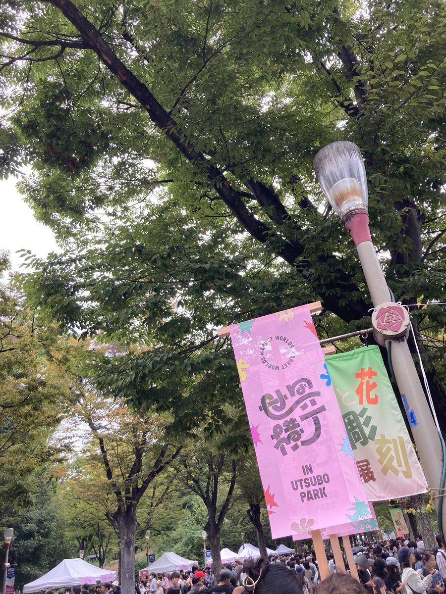 #世界横丁 #靱公園(大阪市西区) #アフター万博 朝のTVで紹介されてて、急遽行ってみました🍀 もうすごい人人! 蚤の市はアフリカ勢中心で、細工物やカラフルなシャツや、木の皮製の帽子やタペストリーも 食事と万博スタンプの列はエグくて、スタンプ列はお昼過ぎには(列べなく」なってました😥 pic.x.com/283u8HIFII
