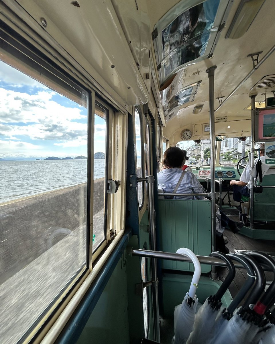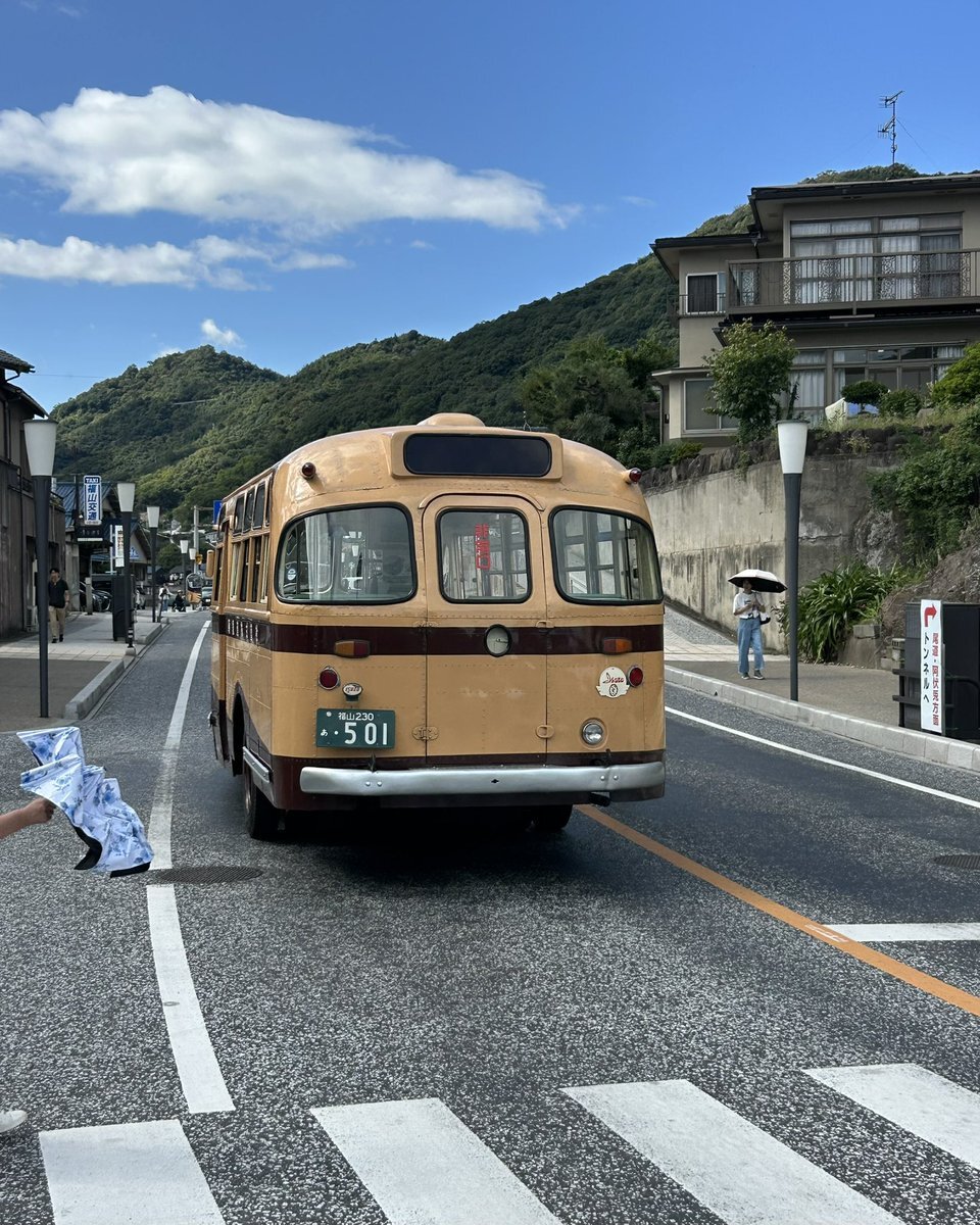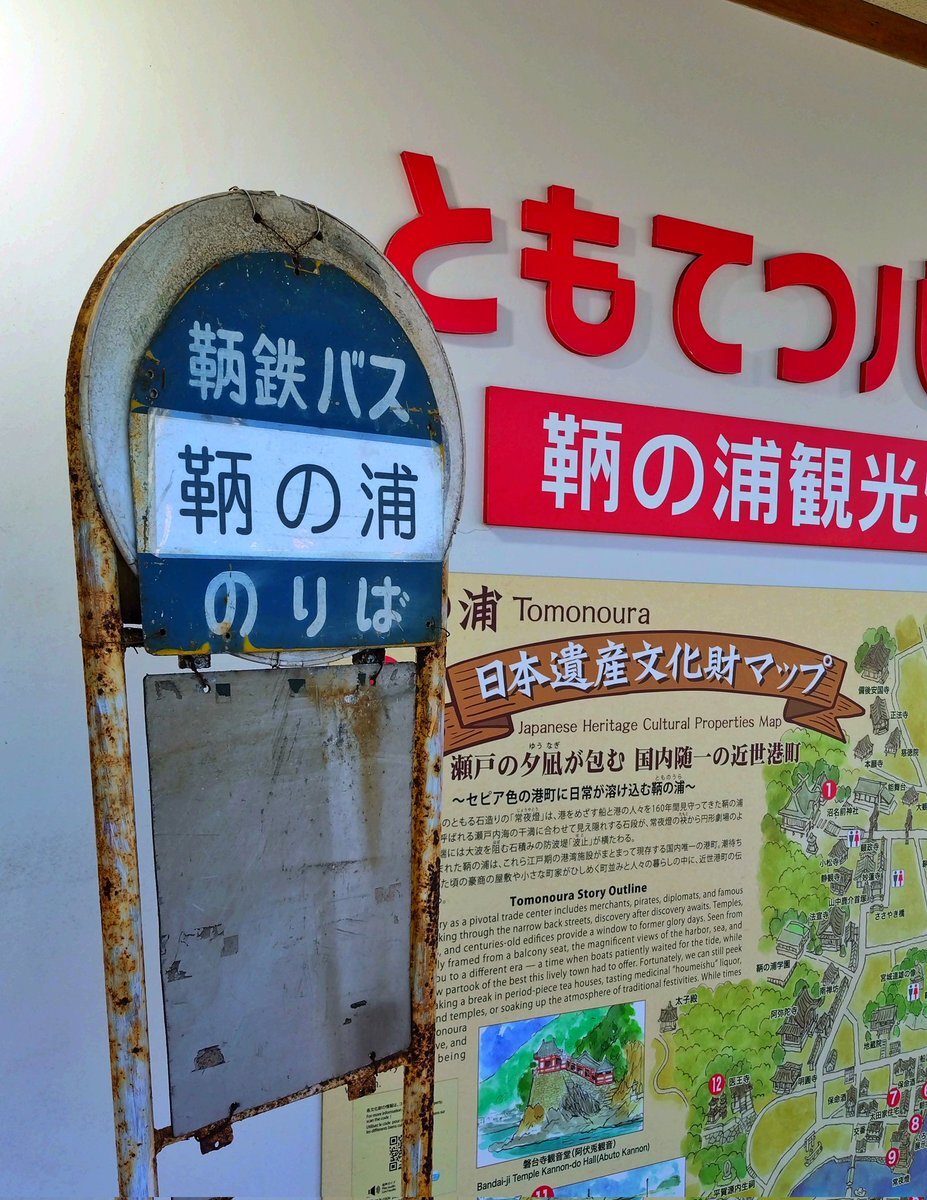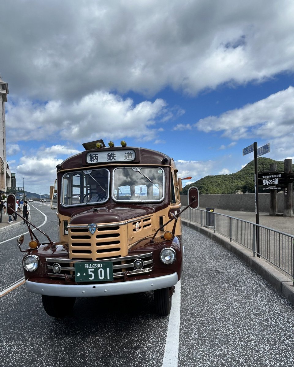 ●その844● 2025/10/13(月) #鞆鉄道 の #ボンネットバス は楽しいおじさんガイドの話聞きながら #鞆の浦 を目指す。社名の通り、以前はここを鉄道が走っており1954年に廃止。80年近く経った今も名残がある。1枚目の葛城バス停は元駅のホーム、3枚目の格子窓は元切符売り場とのこと。さて、海に出た。 pic.x.com/kMZzChkZKc