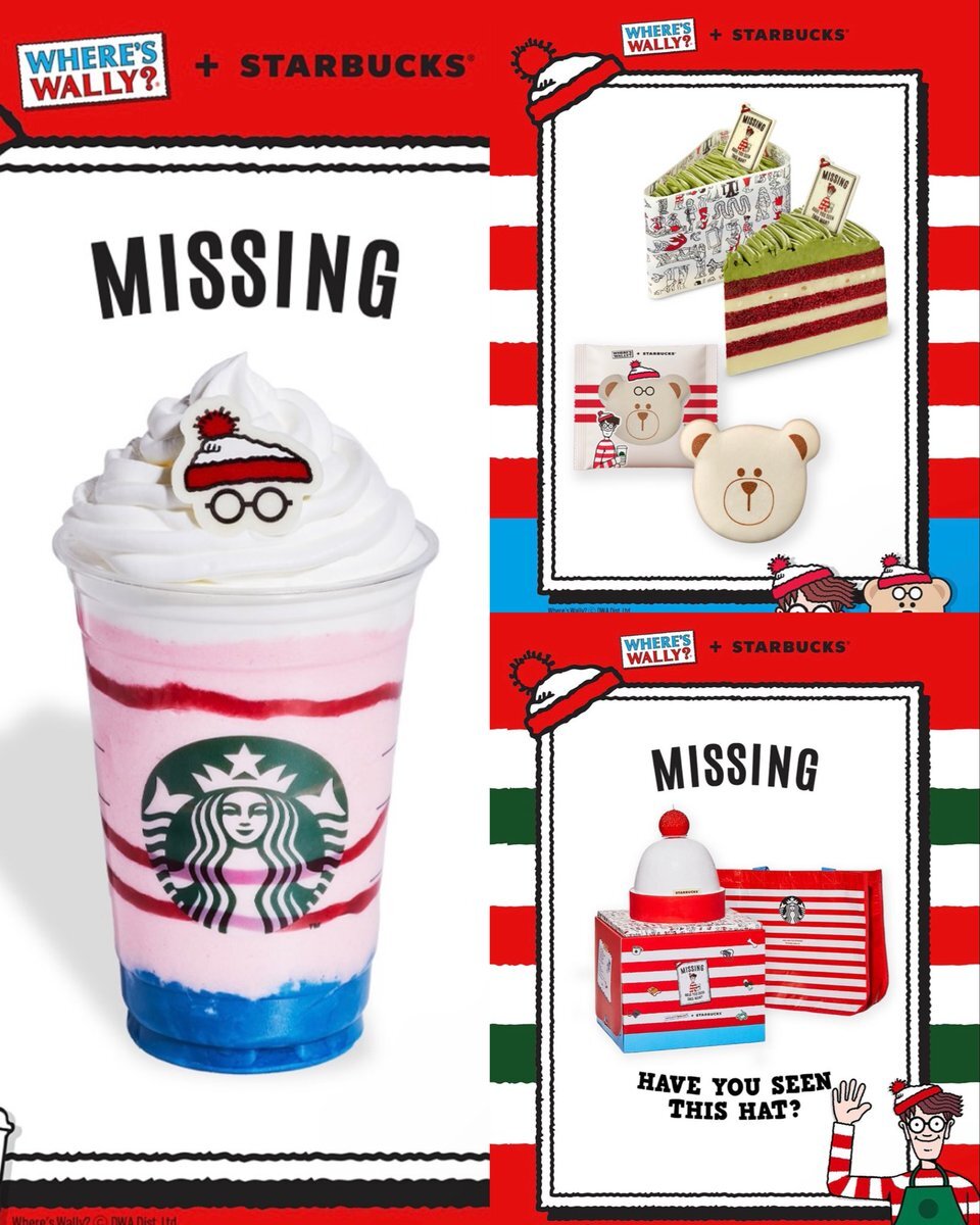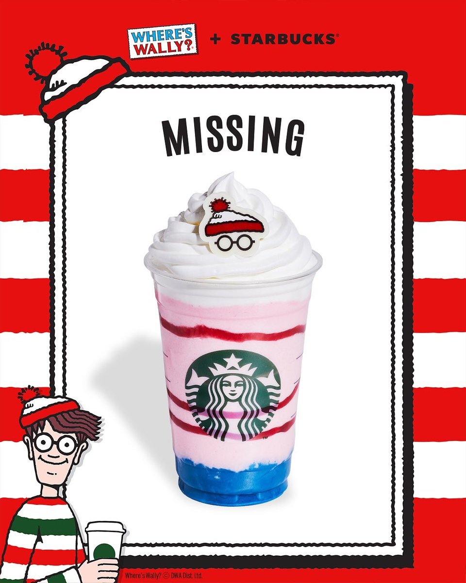 WHERE’S WALLY? 체리와 우유, 블루 바닐라 푸딩이 더해져 체리의 상큼함과 바닐라의 부드러움이 조화롭게 느껴지는 월리 체리 푸딩 크림 프라푸치노❤️ 고소하고 달콤한 크림치즈와 레드벨벳 시트를 층층이 쌓은 뒤 은은한 풍미의 녹차 크림을 얹어 낸 월리 레드벨벳 치즈 케이크💚