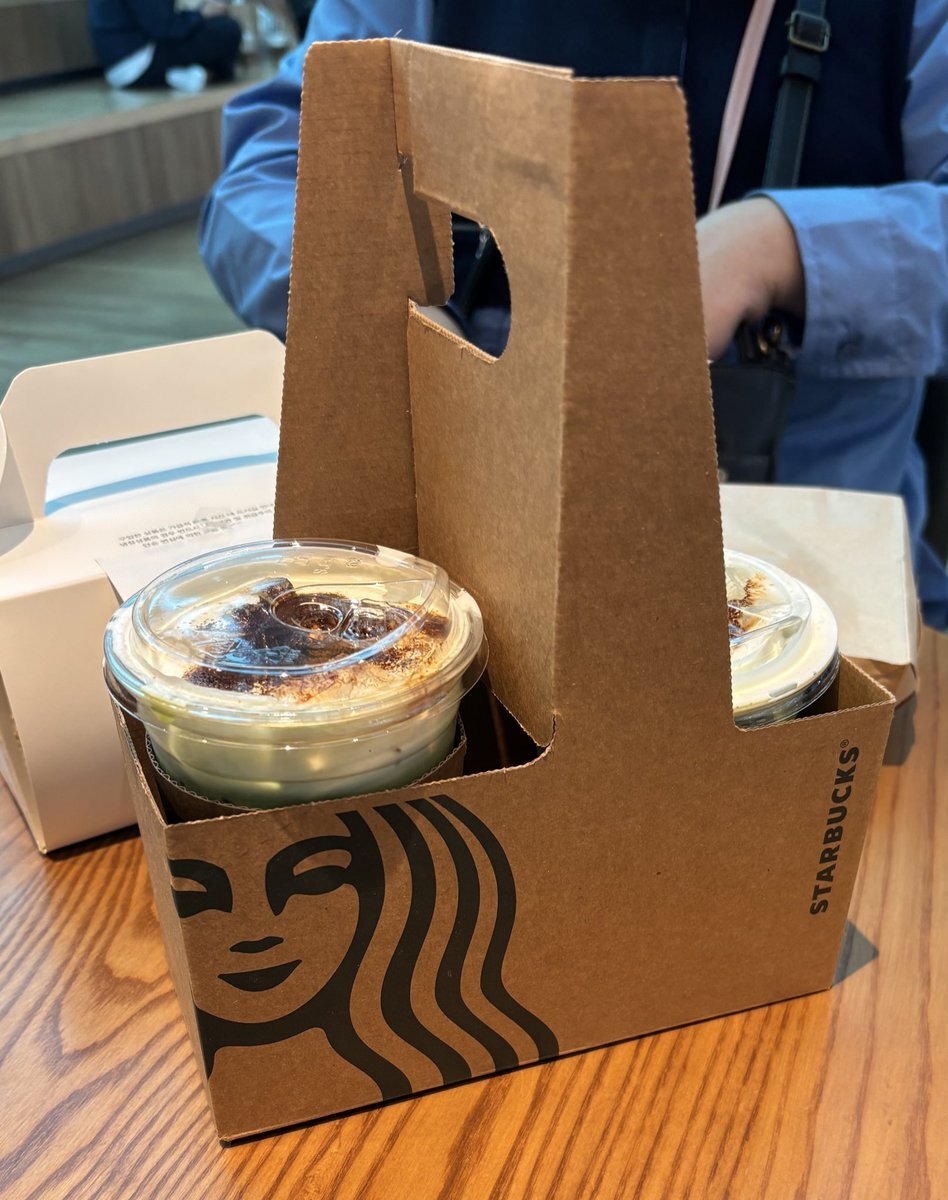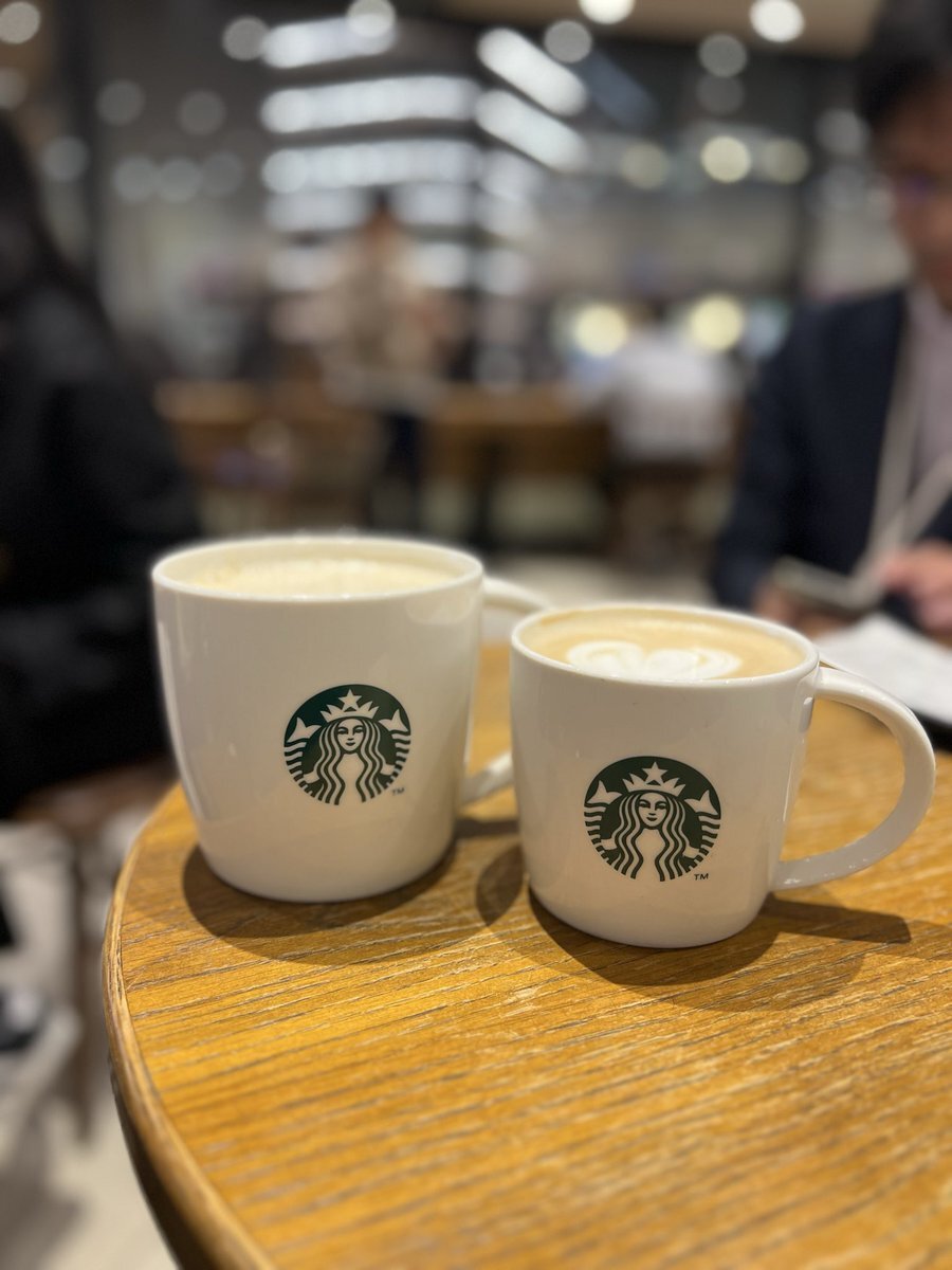 韓国のスタバでは、Ventiもマグカップで提供されました。デカくて可愛い!和田先生はTallサイズ、新見先生と私はいつもVentiサイズです!韓国にも至る所にスタバがありました。お値段は日本とあまり変わらない? #韓国スタバ pic.x.com/jLmUIZKRfs x.com/shinkoh_igaku/…
