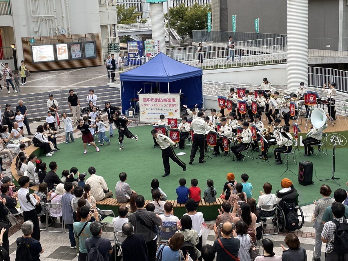 ♬消防音楽隊の出演報告♬ 10月5日、せんちゅうパルにて、コラボまつり・パルフェスに出演しました♪ 色んな団体が出演されており、会場は大盛況! アンコールでは、ダンスで出演されていた方々もご参加いただきとても楽しい演奏になりました! ありがとうございました♪ #豊中 #消防 #音楽隊 pic.x.com/ISNiWbv8HF