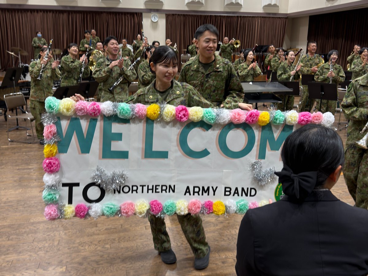 🌺新隊員着隊🌺 10月14日(火) 新隊員が #北部方面音楽隊 に配属になりました🎵 これからの活躍をお楽しみに☺️ #陸上自衛隊 #自衛隊 #音楽隊 #吹奏楽 pic.x.com/V0Uwc94yDb