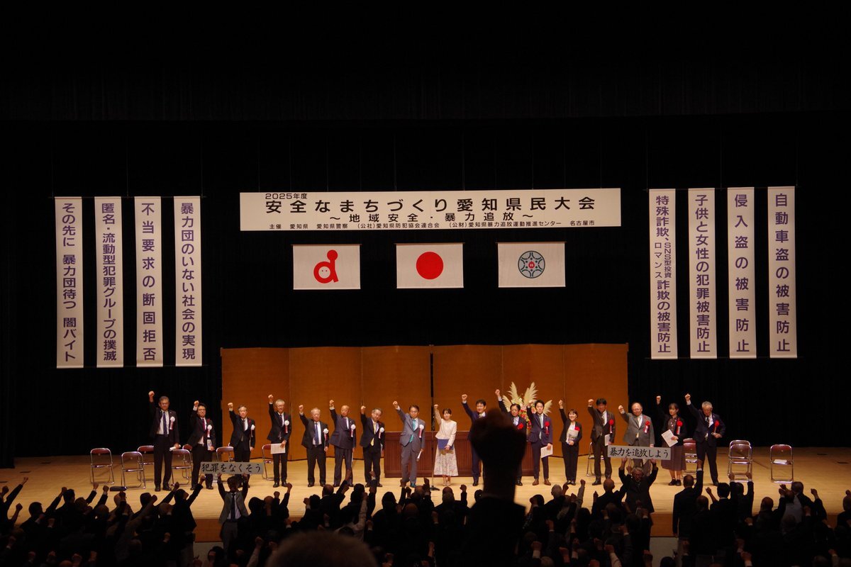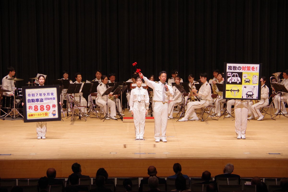 #生活安全総務課】10月16日、安全なまちづくり愛知県民大会が開催され、地域安全や暴力追放に功労がある個人や団体が表彰を受けました。 #大学生防犯ボランティア #愛大防犯POLICE にも愛知県知事感謝状が贈呈されました。 #音楽隊 #自動車盗対策 pic.x.com/SaNacbZStV