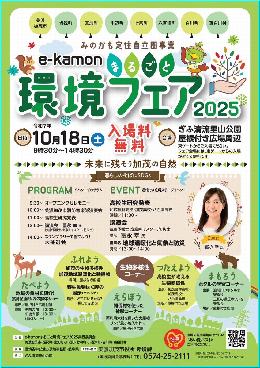 10月18日(土) 岐阜 美濃加茂 #音楽隊 情報 e-kamonまるごと環境フェア2025 ぎふ清流里山公園 屋根付き広場周辺 09:30~14:30 city.minokamo.lg.jp/soshiki/15/175… 10:00 美濃加茂市消防音楽隊 演奏会 *他出演催し多数 #Gifu20251018 pic.x.com/bFxppSXJS8