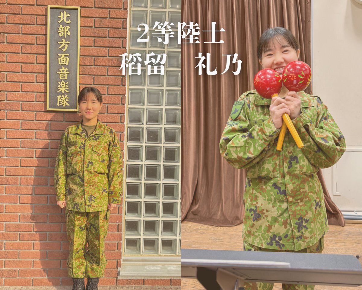 🎺新隊員紹介🎺 ⭐️1等陸士 佐藤 涼花⭐️ 🎶担当楽器:クラリネット 🎶出身🏠埼玉県川越市 ⭐️2等陸士 稻留 礼乃 🎶担当楽器:打楽器 🎶出身🏠東京都東久留米市 今後の活躍にご期待を♬ #陸上自衛隊 #自衛隊 #北部方面音楽隊 #音楽隊 #吹奏楽 pic.x.com/lghM7Uhq7H
