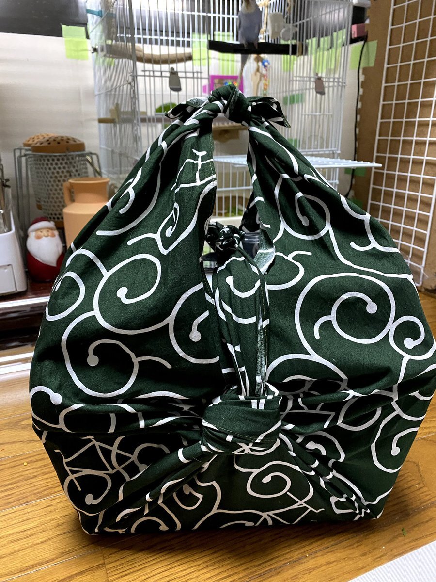 バードキャリーをふろしきで包む。 結び目が守るための紐代わりにもなるし、持ち手も好きな長さにできる。 大きいふろしきならなかに毛布を仕込むこともできる。 手持ちのキャリーバッグにこのまま入れてもOK、ふろしきは便利グッズです。 #風呂敷 #風呂敷活用 #キャリーバッグ pic.x.com/KnIPOF87BK