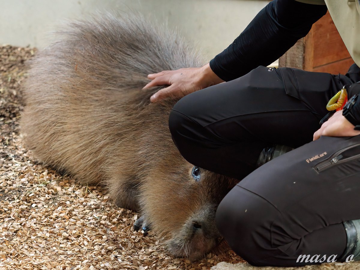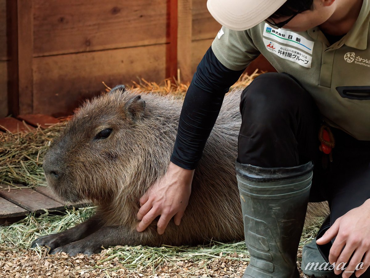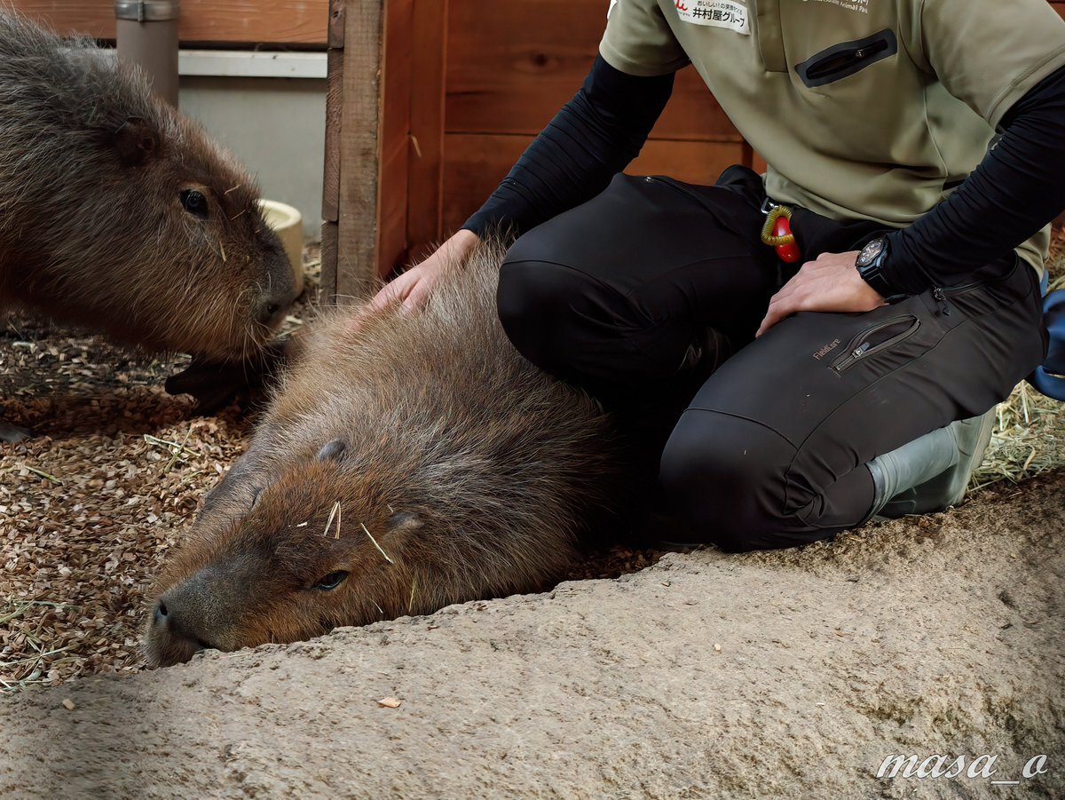 なでなでして貰った #カピバラ の 夢ちゃん。次第に目がとろ~んとして、ごろんと横になってとても気持ち良さそうです。飼育員さんも可愛くて仕方ないんだろうなぁ。なんだか見ているこちらまで温かい気持ちになれますね😃 続く #ごかつら池どうぶつパーク #飼育員さん pic.x.com/ezW67UU5uH