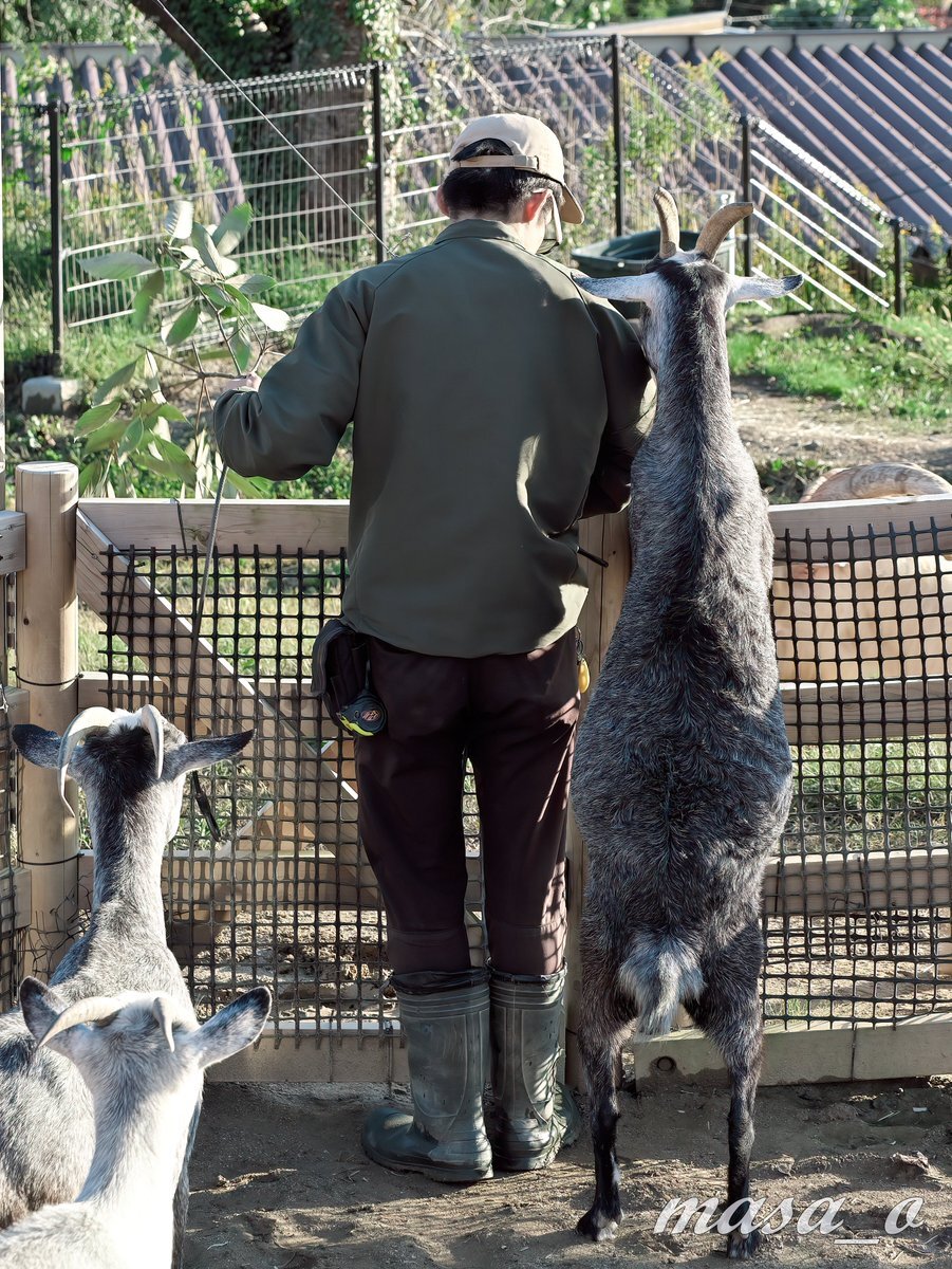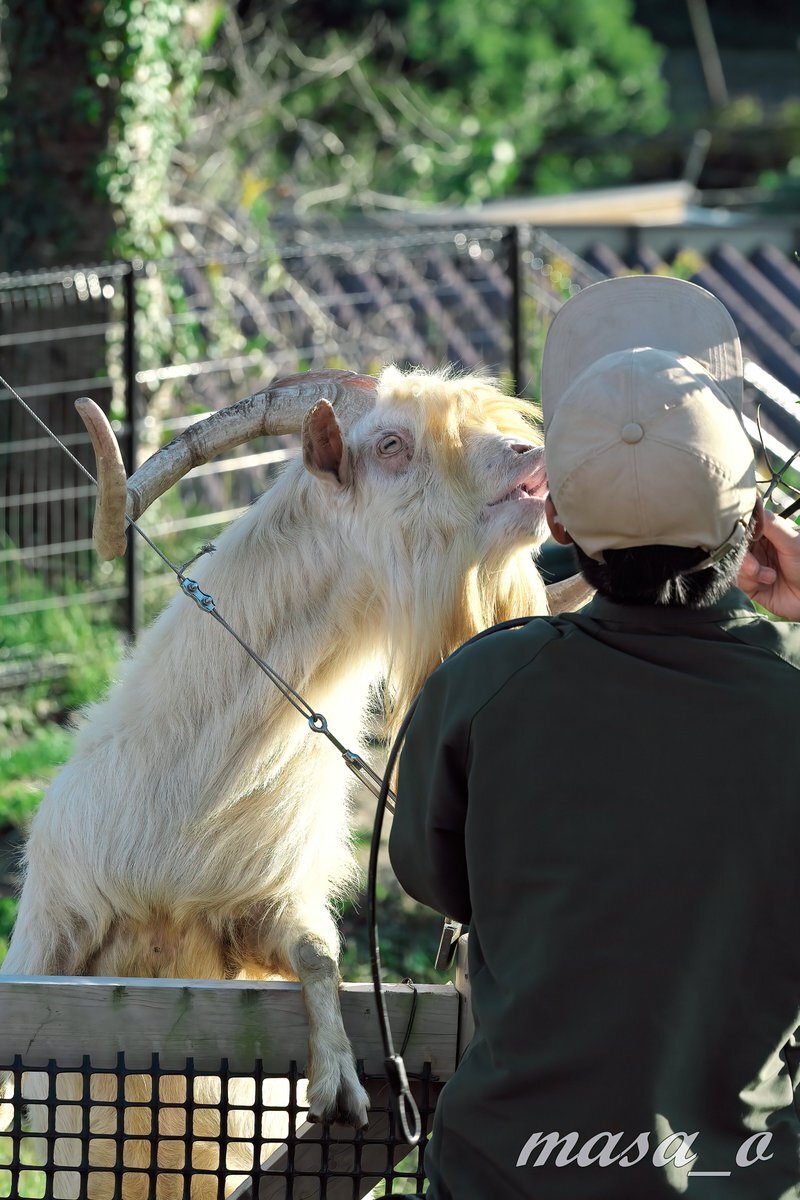 マック君を偲んだポストでちょっとしんみりしちゃったので、今日の最後は明るくいってみましょーーー 先日♀ヤギさんにモテモテだった飼育員さん、実は♂ヤギさんにもモテモテなのだ。ヨっ! 憎いよっ!😅 #ごかつら池どうぶつマーク #飼育員さん #ヤギ pic.x.com/ngJwWzypTk