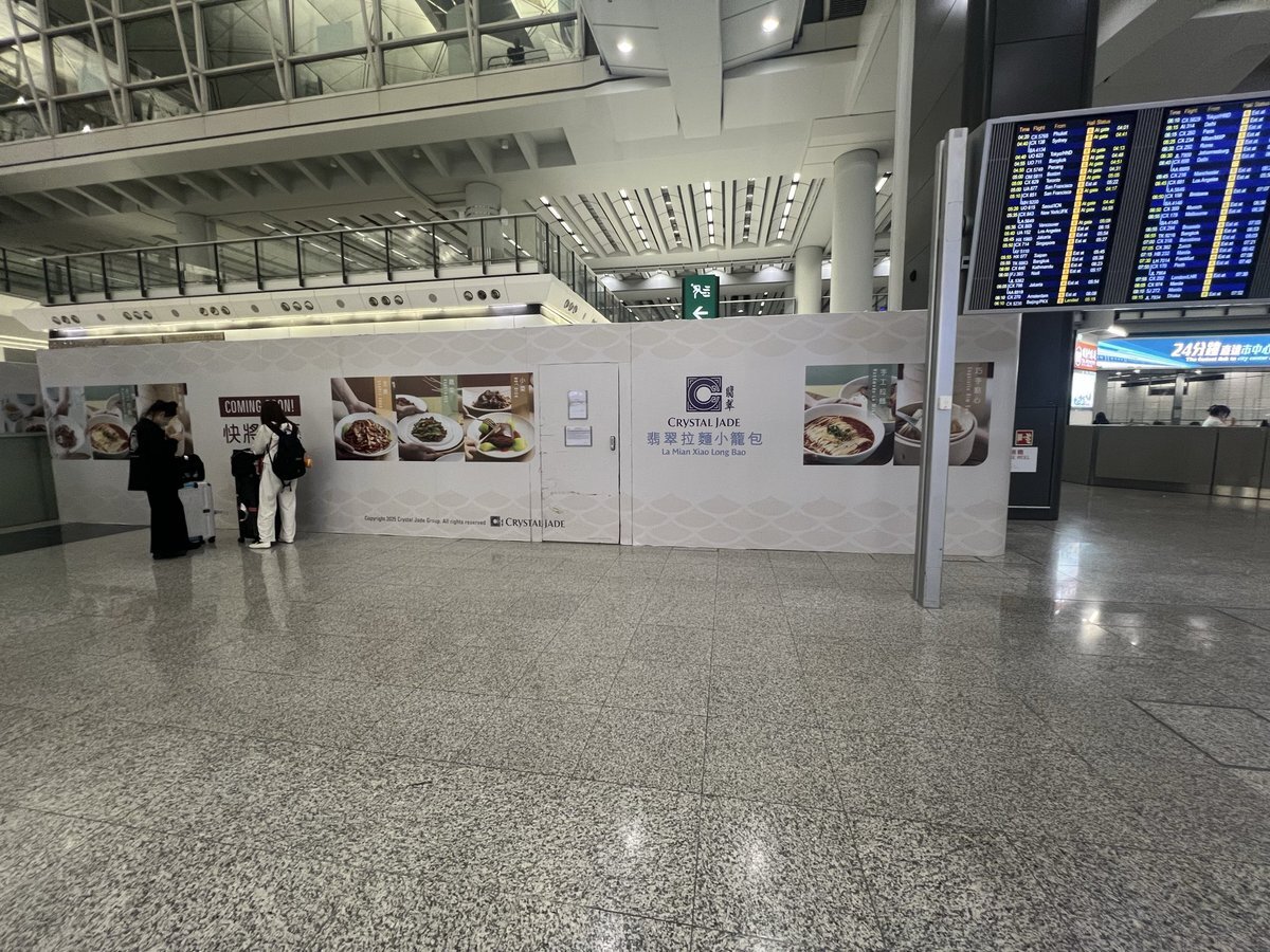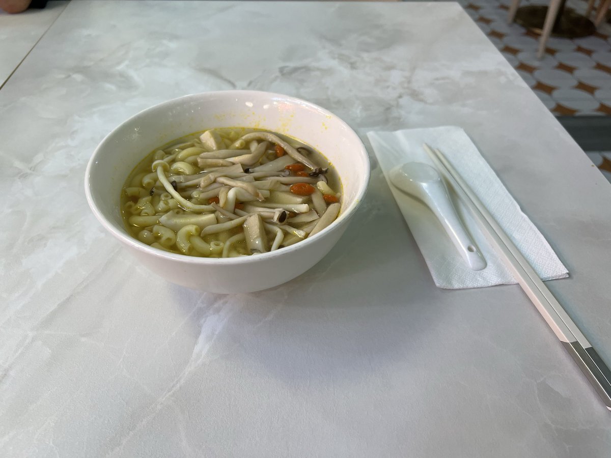 あと、香港空港で海老ワンタン麺かタンタン麺の朝ごはんにしようと思ってたら、何洪記事もCrystal Jade も、いまどちらもまさかの改装中だった。街中まで行って飲茶にするか迷ったけど、夫の要望で太興(たぶん)に。私はキノコのマカロニスープにした。これはこれでおいしかった🤤 #香港旅行 pic.x.com/DMOydTncAH