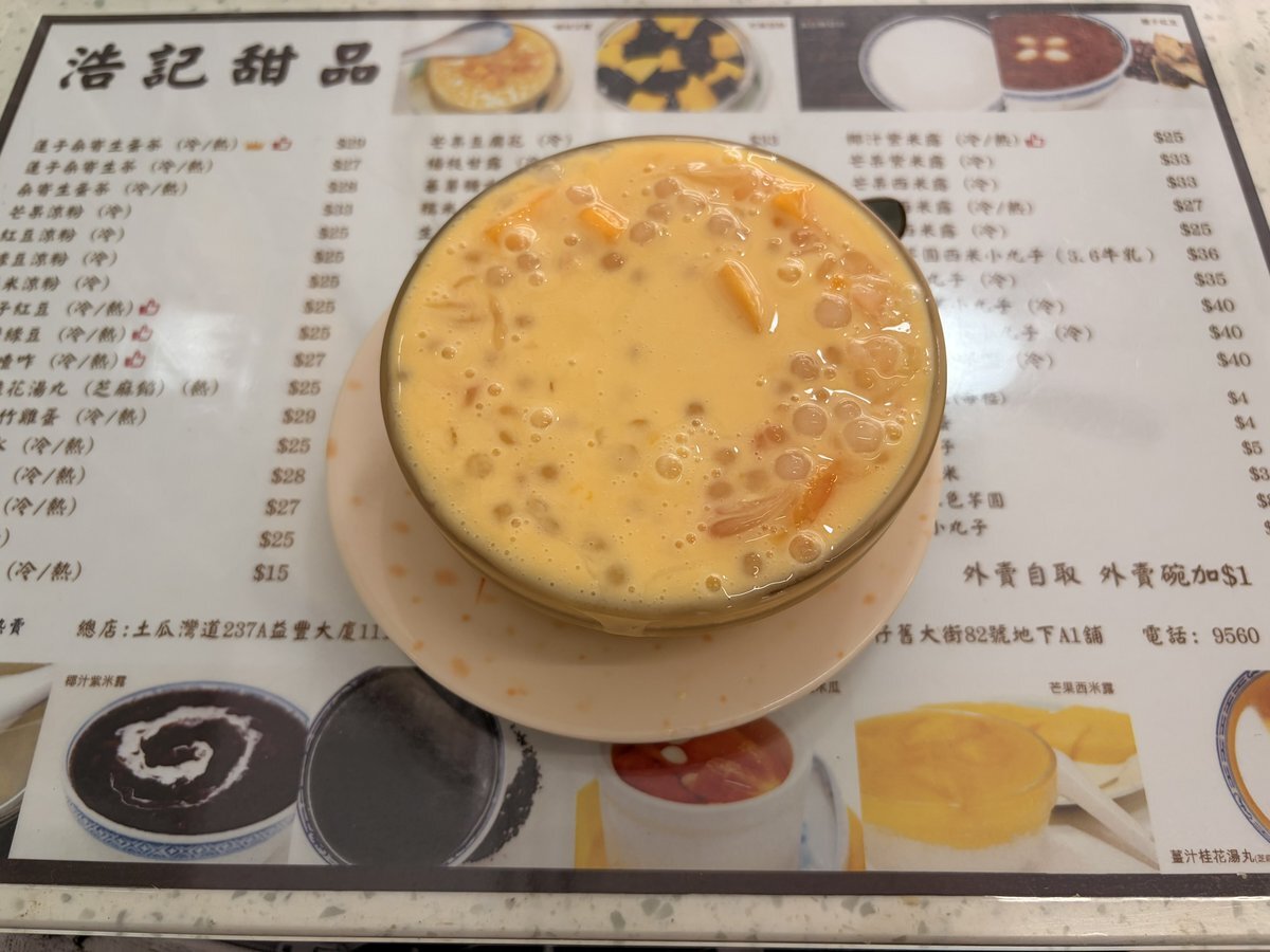 🇭🇰香港 浩記甜品 maps.app.goo.gl/nrWKFGUa9JUq7D… 九龍城砦公園から歩いてこちらへ。 大好きなのに何故か食べる機会が少ない楊枝甘露(33HKD)を注文。 マンゴーが主役と思わせて実はポメロが主役で珍しくマンゴーが引き立て役になってると思う逸品😊香港スイーツ好好味♪ #香港旅行 pic.x.com/hmMO9z5unh