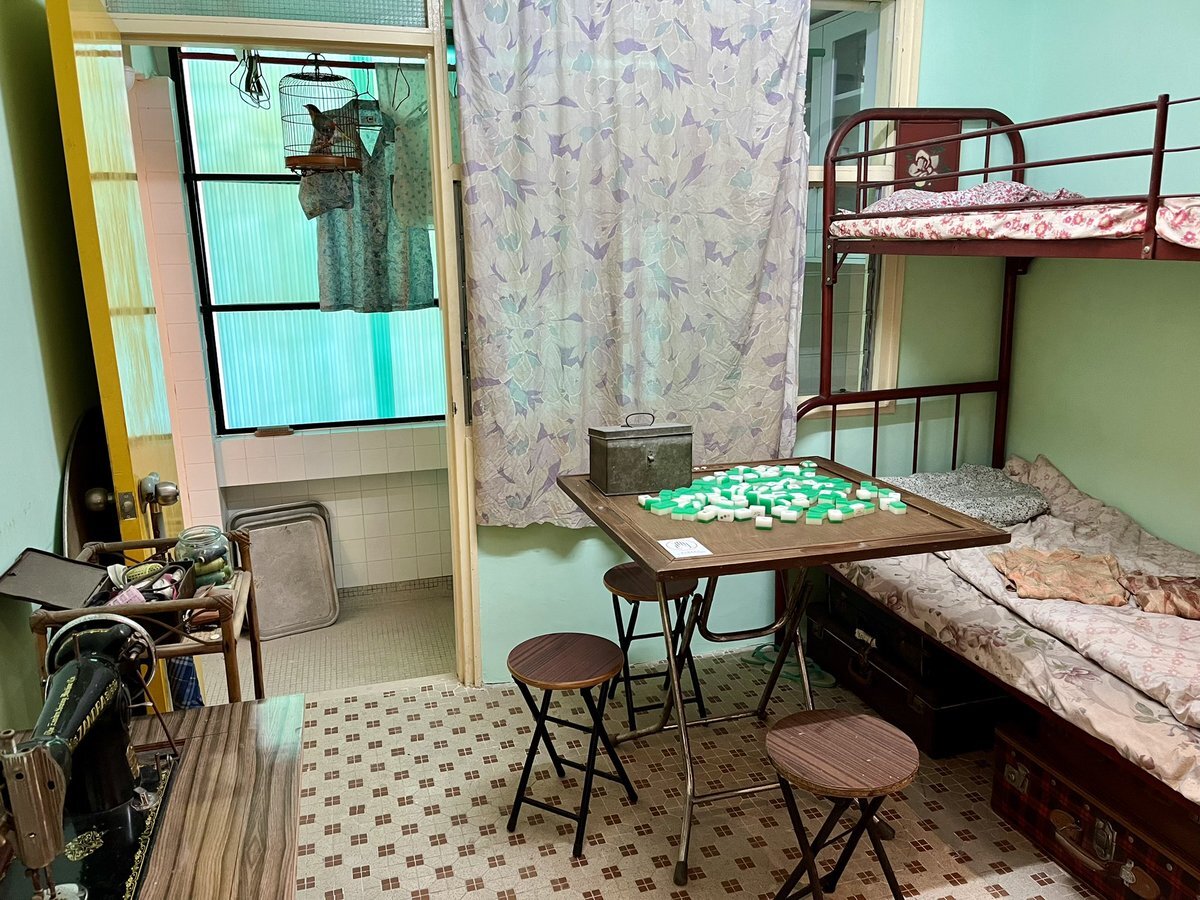 映画の展示の後に、もう少し昔の暮らしが見られる「美荷樓生活館」へ 昔の古い団地を改装していて、こちらにも叉焼飯屋さんや理容室の再現がありました 団地内に宿泊施設があるので機会があったら泊まってみたいなぁ #香港旅行 pic.x.com/p4zF5mx8Nd