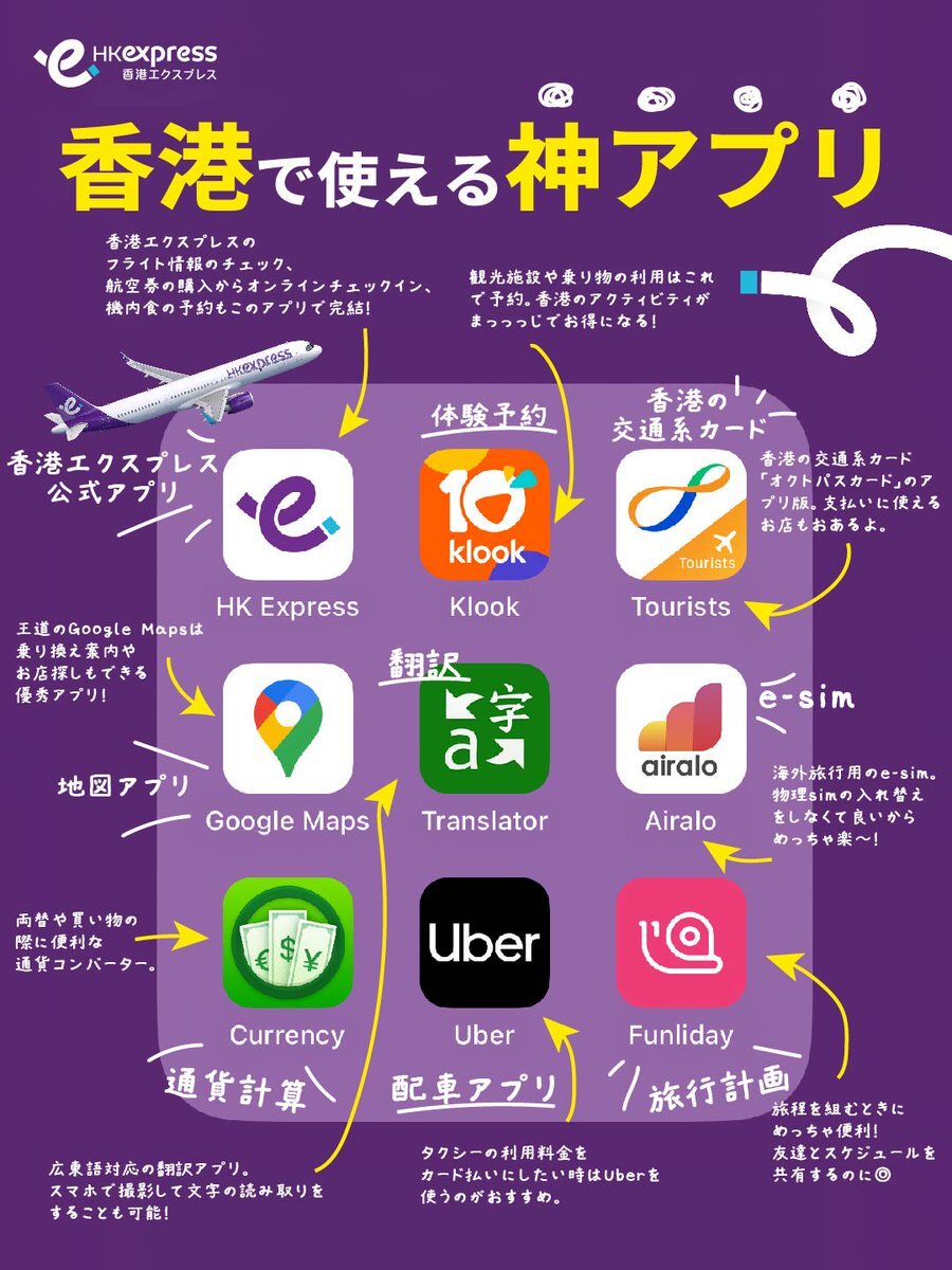 ╭━━━━━━━━━━╮ 保存必須! #香港旅行 神アプリ9選 ╰━━━━━━v━━━╯ 👉 #香港エクスプレス 👉 Klook 👉 オクトパスカード 👉 Google Map 👉 Microsoft 翻訳 👉 Airalo(e-sim) 👉Currency 👉 Uber 👉 Funliday 役に立ったらいいねorリポスト🔁 pic.x.com/t3tIvzmnep