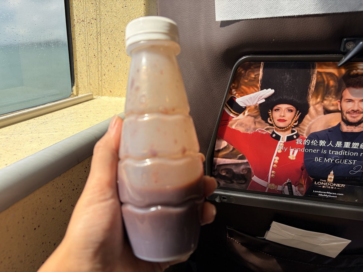 これまじ凄いな。チートだよ。 まるで飲み物を飲んでるように見えるのに実は私デザートタイムなの。 外食してお店出てこれをゴクリ。口の中の味変も出来てデザート買わなくて済む。 フェリーでもまさか私がデザート食べてるなんて隣の人は思ってなかったでしょう🤭 #香港旅行 pic.x.com/Hkh85I8eDP