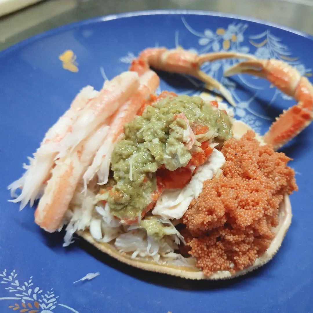 今がシーズン香箱がにの甲羅盛り! 『甲箱ガニ』 紅ズワイガニの子持ちのメスのことを北陸地方では「こうばこガニ」と呼びます。 『甲羅盛り』 かにみそ、内子(未成熟卵)、外子(卵)、ほぐし身、足身"を甲箱ガニの甲羅に集約させたなんとも贅沢な逸品 #魚との清水 #香箱蟹 #紅ズワイガニ pic.x.com/rZxlG5VPJx