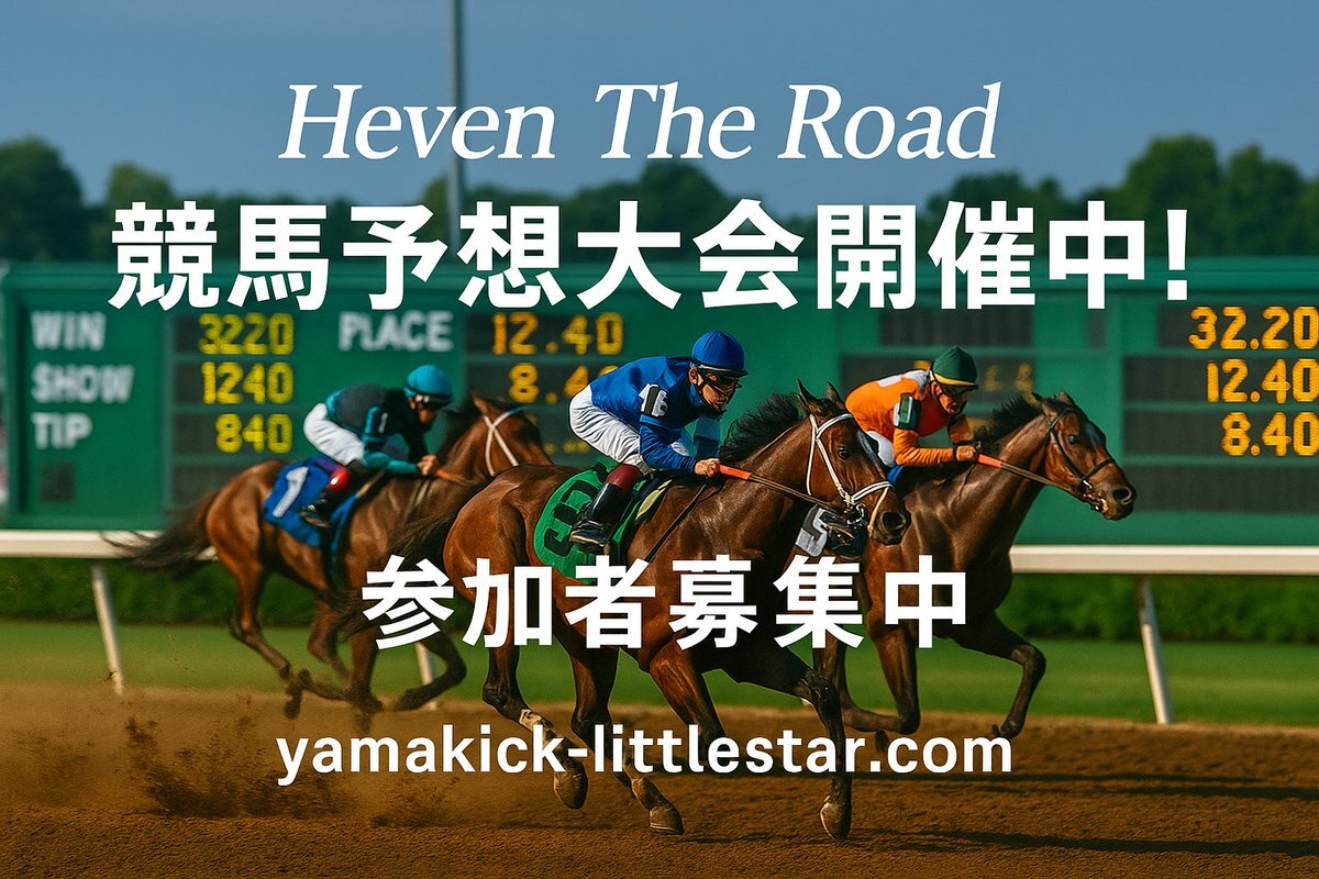 🏇✨【#競馬予想大会2025 参加者募集】✨🏇 楽しみながら予想で競おう🎉 中央競馬🏇・地方競馬🏇のレースを1年で『払戻額記録』を争う大会開催中! 詳細は👉 yamakick-littlestar.com ご参加お待ちしてます✨ #競馬 #競馬予想 #参加者募集 #競馬好きと繋がりたい #重賞予想 #馬券予想 pic.x.com/B66QGbq7Il x.com/Heven_The_Road…