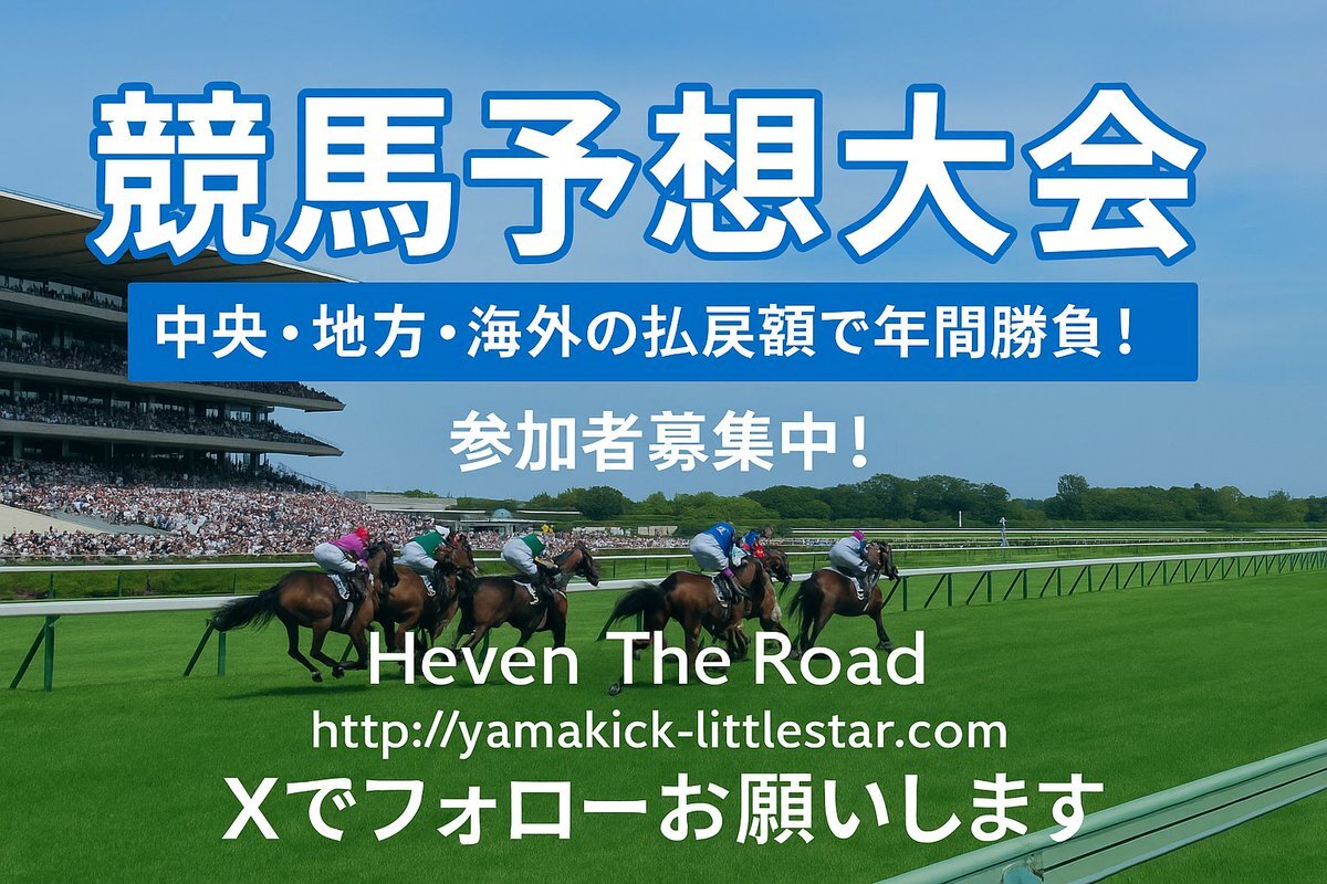 📢【フォロー大歓迎&フォロバ100】 🏇競馬をもっと楽しもう!『Heven The Road』で払戻額を競う《#競馬予想大会》&《#POG》開催中✨ 競馬好きさん、ぜひ繋がろう! 📲 @Heven_The_Road 🏠 yamakick-littlestar.com #競馬 #POG #フォロバ100 #競馬好きと繋がりたい #重賞予想 #馬券予想 pic.x.com/AcNroI2KIz
