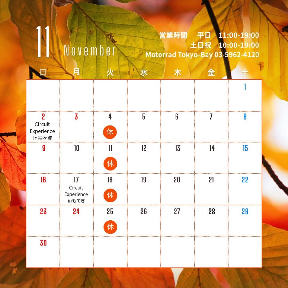 みなさまこんばんは! Motorrad Tokyo-Bay、11月の営業情報をご案内いたします✨ 涼しくなってまいりましたが、朝晩冷え込みますので、お風邪を召されませんよう〜☺️🙏 #MotorradTokyoBay #BMWMotorrad #MakeLifeARide #駆けぬける歓び #秋を楽しもう #体感しなきゃ pic.x.com/8tZ9VEYMAR