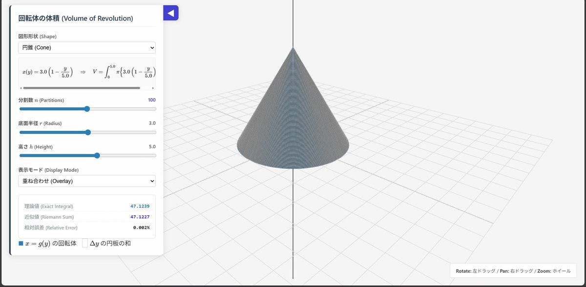区分求積法と積分の誤差を計算するサイトをGemini3Pro で作りました! nを増やすと誤差が減るのが3Dで見えます! solid-scope.netlify.app #個人開発 #AI #Gemini #駆け出しエンジニアと繋がりたい pic.x.com/vMSWy5bElX