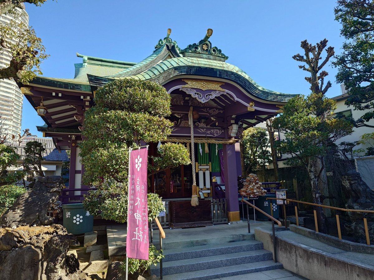 年末や春にツアーや舞台で東京来て参拝する方もいるのかな。社殿ものぼりも紫の #高木神社 。絵馬を書く机には、黒の他に全員のメンカラが揃うペンも。でもインクが切れてるものも多いので、確実に一筆入魂!したければ持参するのが吉。社務所は朝9時からだけど、その前から参拝できます🙏 pic.x.com/0Q9VufgPMg