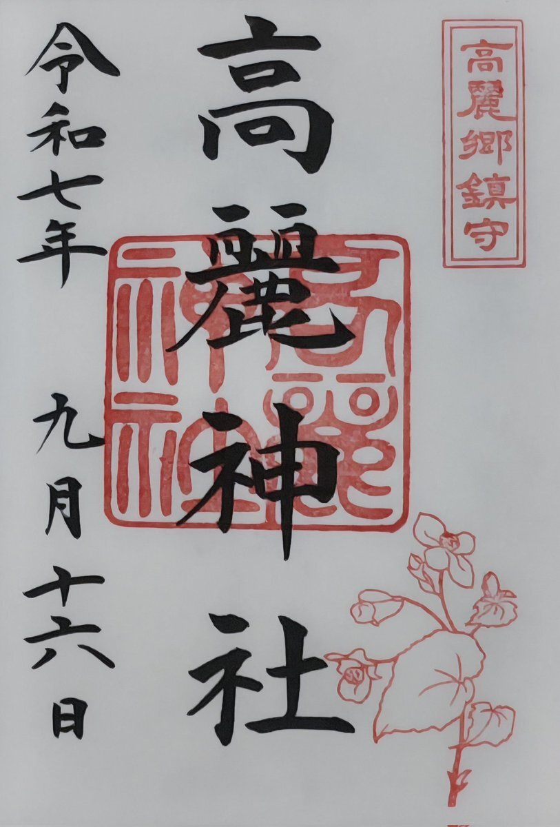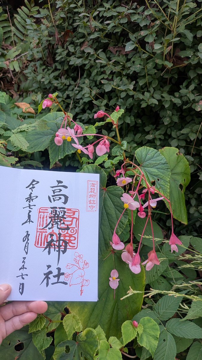 #高麗神社 2025.09.27 9月の参拝です 二之鳥居や御神門横の緑が大分弱くなって少しづつ色づき始めようとしてるように感じます #御朱印 はお書き入れで拝受 9月の花の印は #シュウカイドウ 花と一緒に撮りました📸 数輪ですが #曼珠沙華 も咲いてましたよ pic.x.com/8ONX7S8SFa