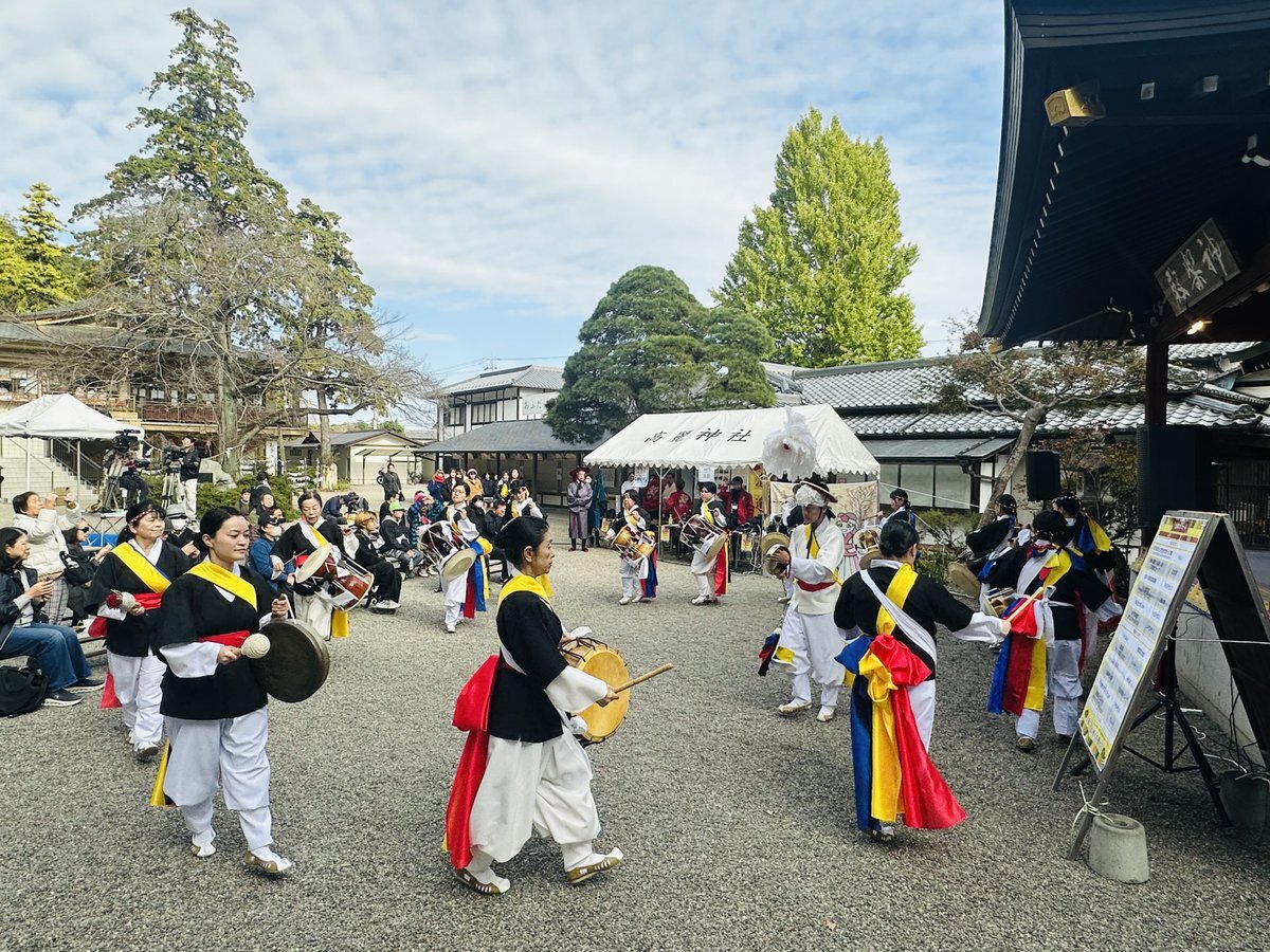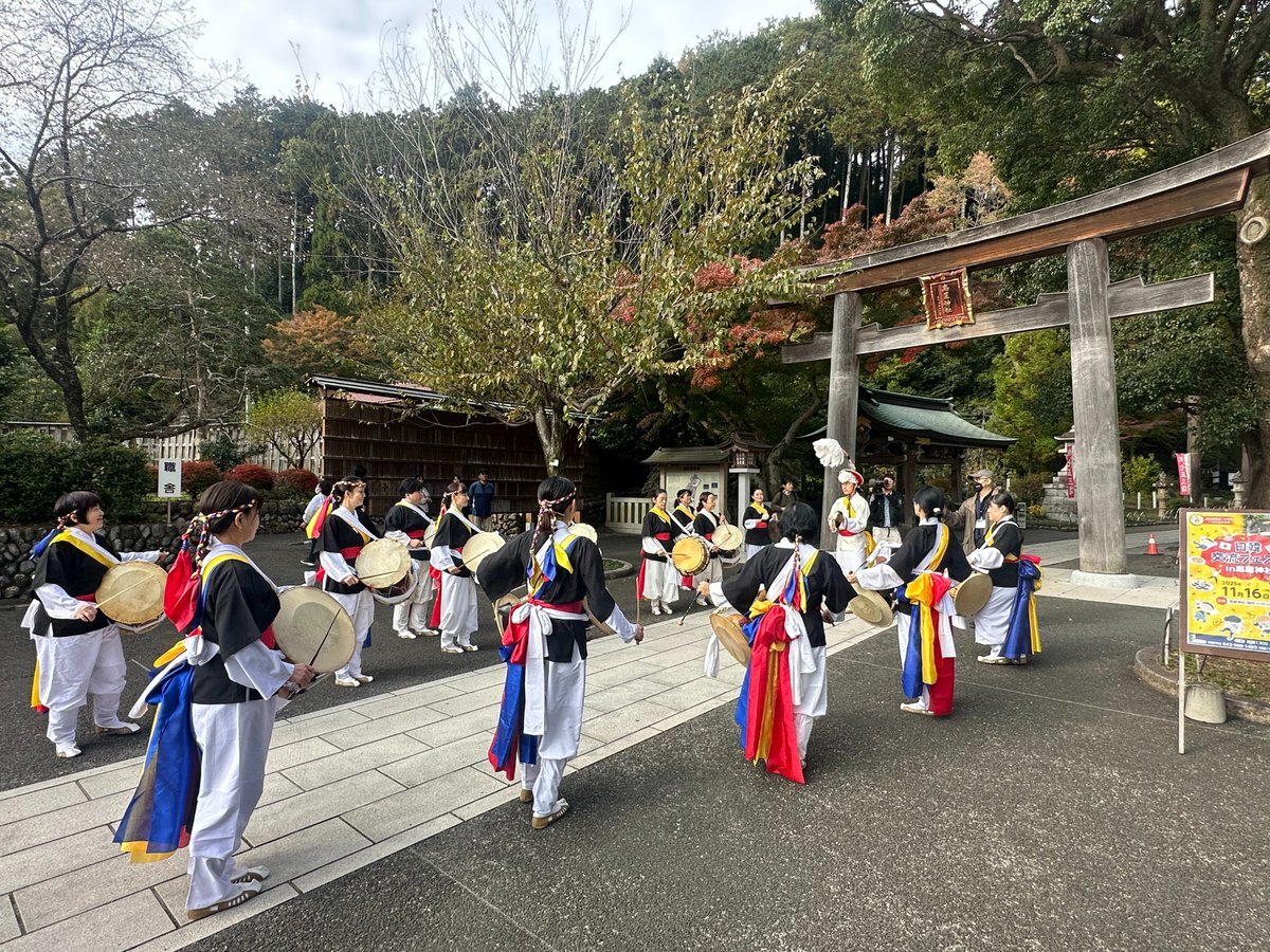 埼玉県にある #高麗神社 で「日韓交流フェスタ in 高麗神社」が開催されました✨ 高麗神社は高句麗からの渡来人「高麗王若光」を主祭神として祀る社です! 韓国文化院 世宗学堂チャング講座の李昌燮先生と受講生たちがオープニングを飾りました🍀 屋台もあり、多くの方で賑わっていたそうです😆 pic.x.com/dqacU37ThH