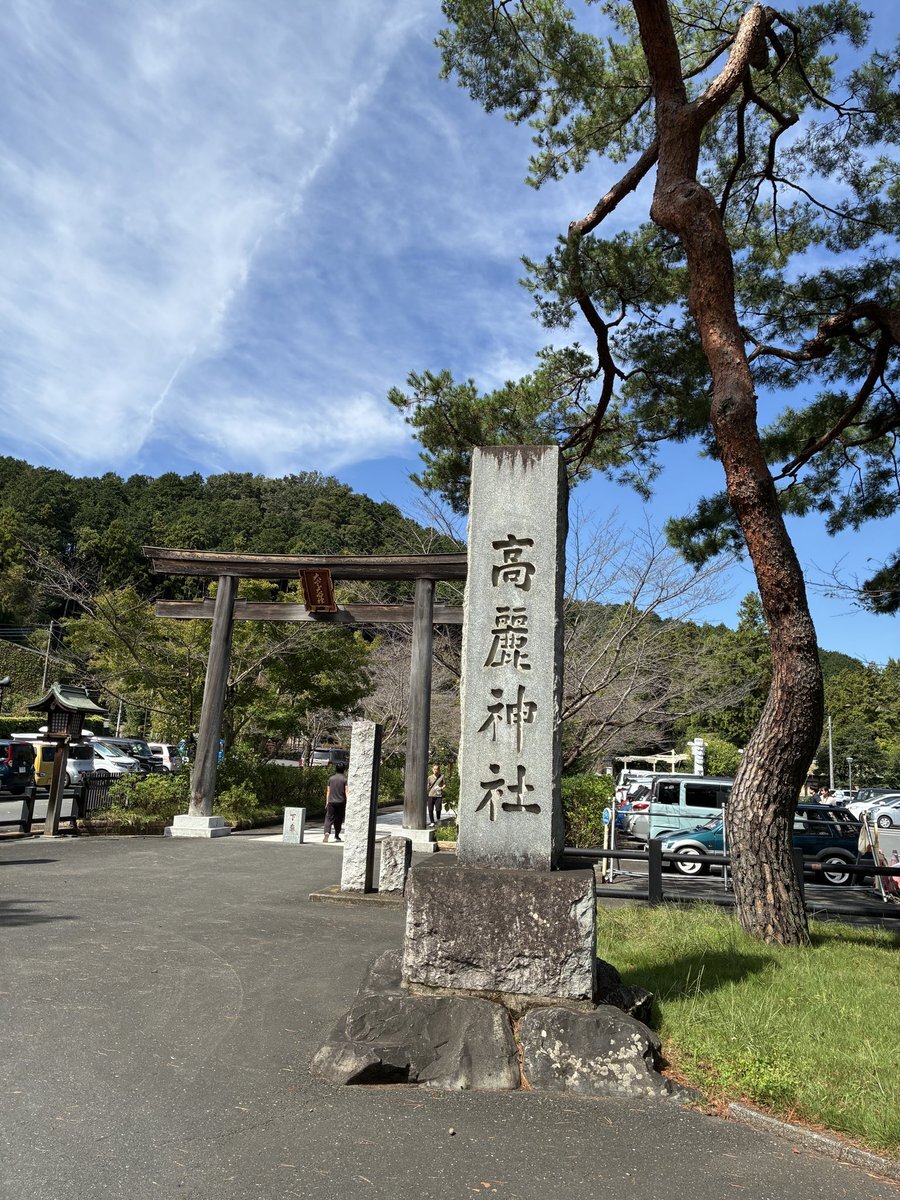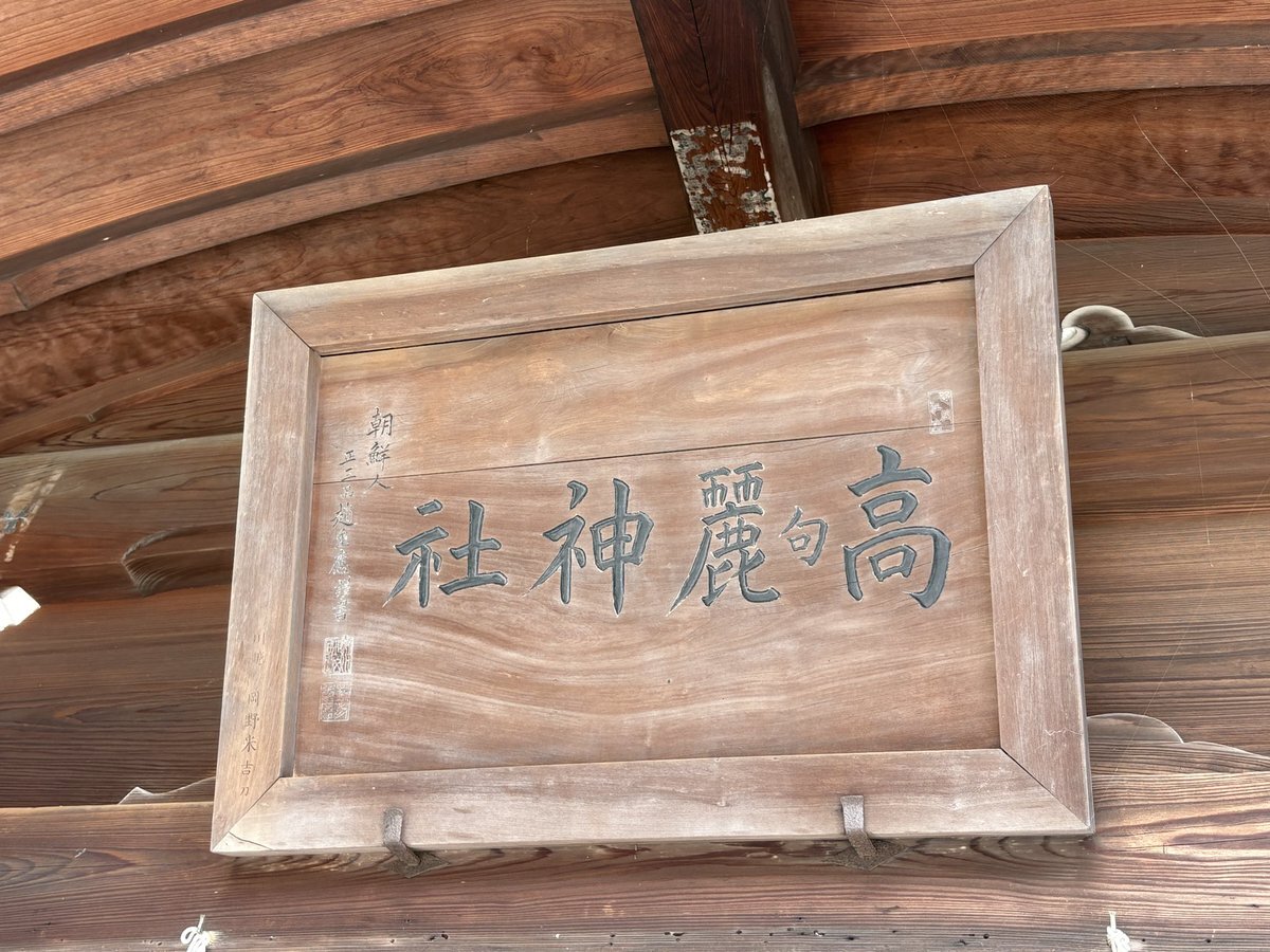 高麗神社の扁額 目を凝らして見ると「高句麗神社」ってなってます 曇り空でしたが、笑顔になりました 粋ですね〜 #高麗神社 pic.x.com/bk9i1oYhTr