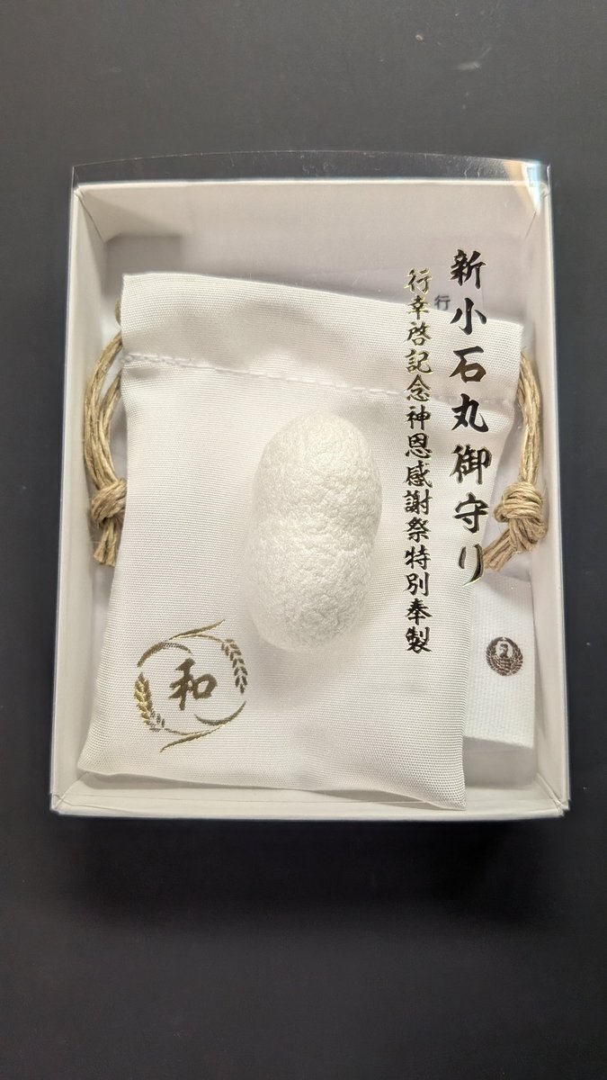 #高麗神社② 2025.09.27 ①神楽殿で祭祀舞が行われていました ②③④新小石丸御守り 蚕の繭で小石丸の繭と、品種改良された新小石丸の御守り袋です pic.x.com/YDc8jheaOO