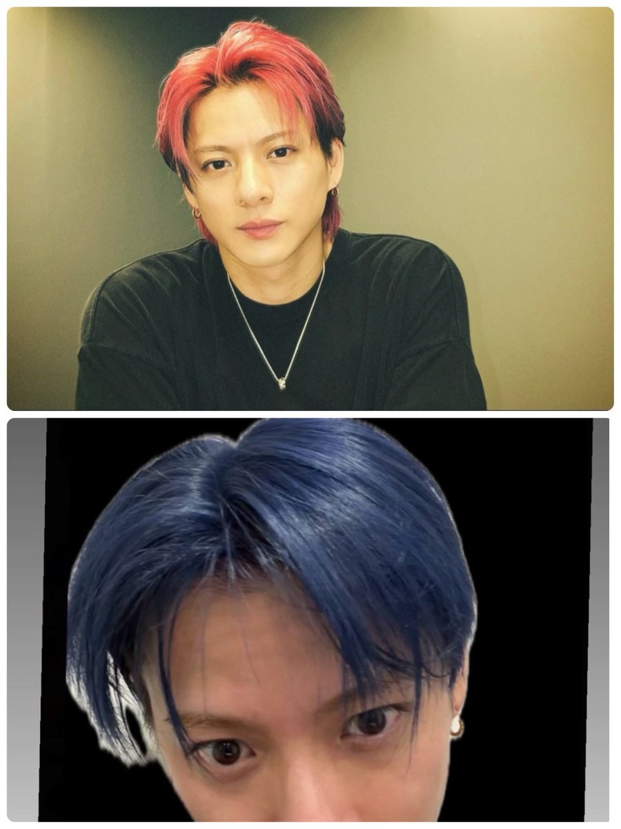 赤髪🟥(ひらの)→青髪🟦(じん)→紫髪🟪(KC)ってこと?Number_iカラー??こんなにもいろんな色試せる頭皮と髪質やばっ、強っ 紫はおばあちゃんがやってるのしかみたことないから見てみたい気もする👀 楽しませてくれるね #平野紫耀 #髪色 #Number_i pic.x.com/uGYN4MmKBf