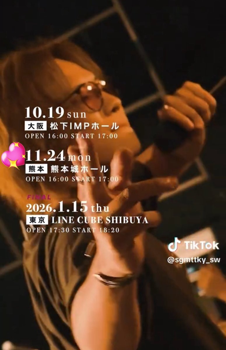 みんなで行こう!! TikTok熊本の彼氏こと シンガーソングライター 杉本琢弥くんのLIVE•*¨*•.¸¸♬︎ 一度行ったら沼ります💖𓂃🫧 #杉本琢弥 #熊本の彼氏 #シンガーソングライター #鬼灯 🥀 #REMAKEホールツアー❤️🔥 #熊本城ホール 2025.11.24 【定期】 LIVE HOUSE & HALL TOUR 2025✨ pic.x.com/WkkTolQKBD x.com/s_tky_staff/st…