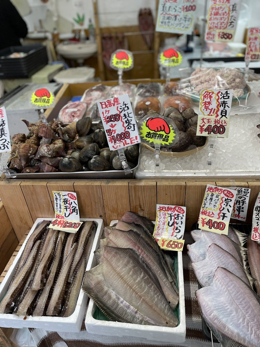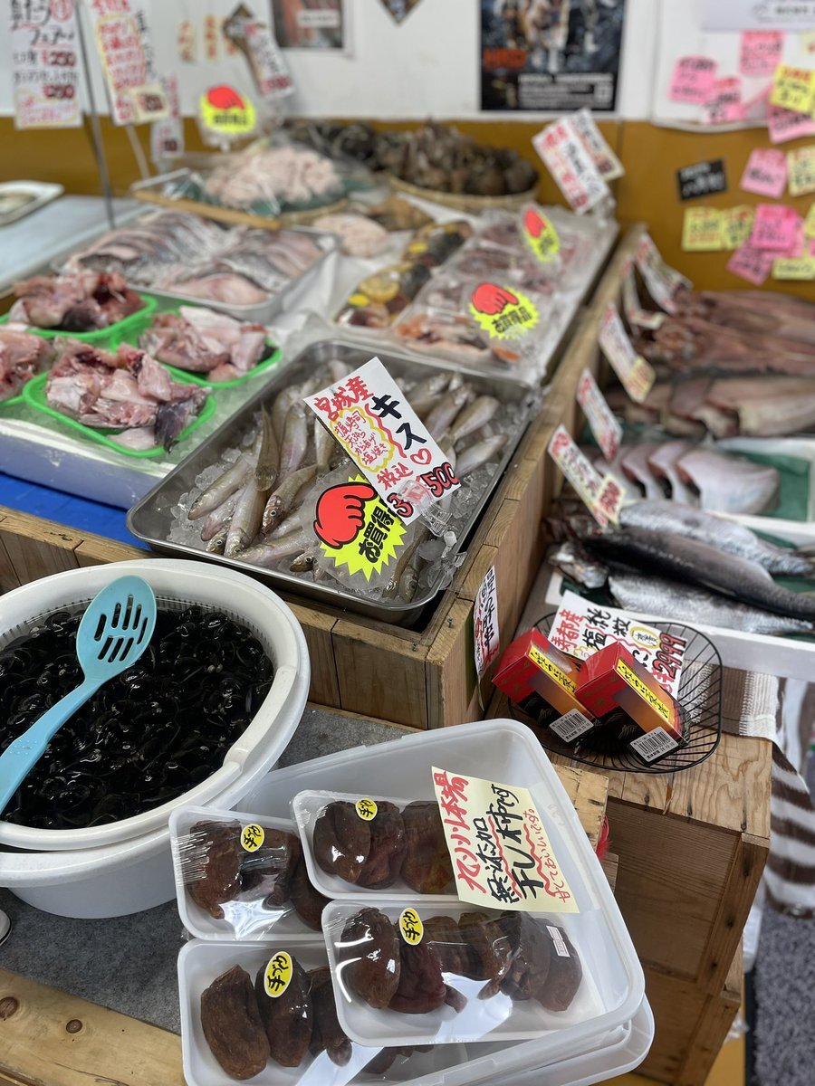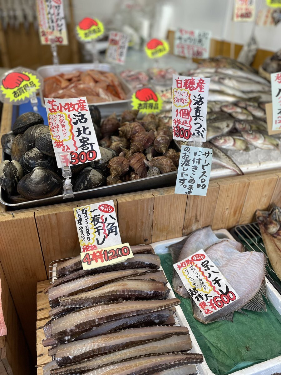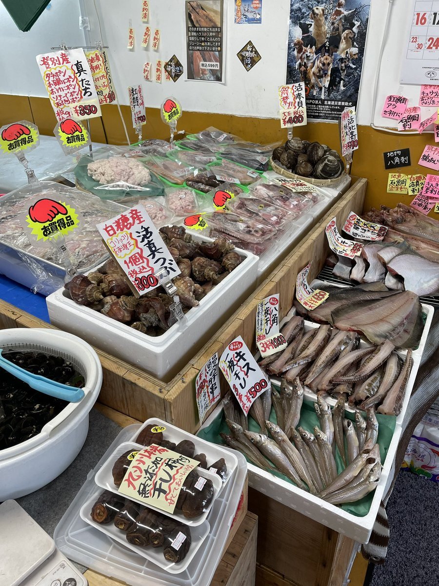 自家製干物4種🐟✨ハタハタメス大サイズ🉐3尾1,100円❣️キュウリ魚🐟真鱈子真ダチ活赤貝、北寄、真つぶ🐚お買得です😊お足元に気をつけて本日もどうぞよろしくお願い致します🌈 #登別 #魚屋 #まるひろ伊藤水産 #刺身 #干物 #鮮魚店