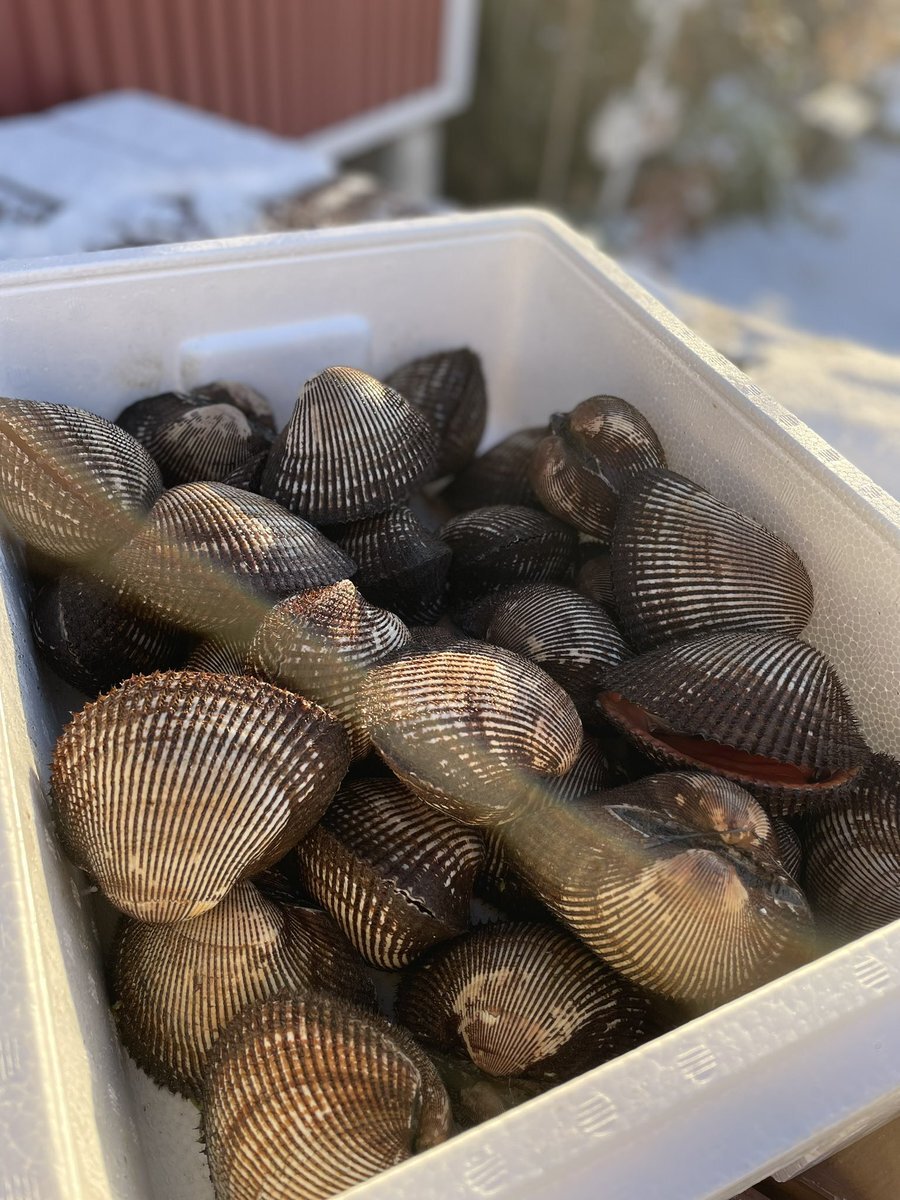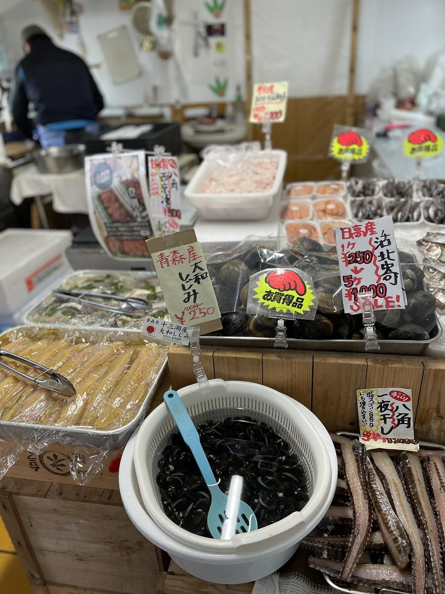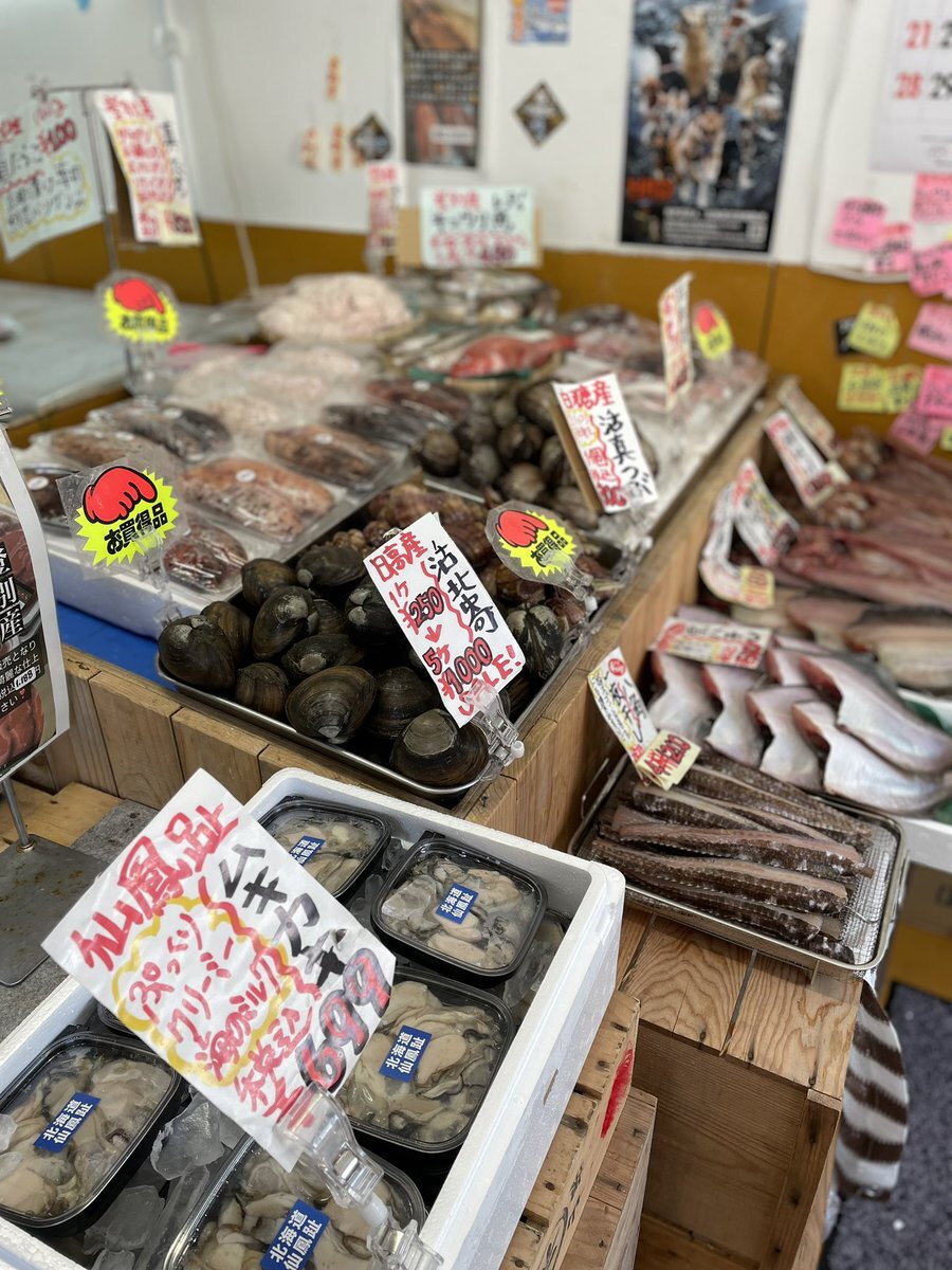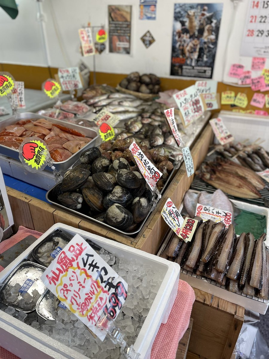 自家製干物4種🐟✨ハタハタメス大サイズ🉐3尾1,100円❣️キュウリ魚🐟真鱈子真ダチ活赤貝、北寄、真つぶ🐚お買得です😊お足元に気をつけて本日もどうぞよろしくお願い致します🌈 #登別 #魚屋 #まるひろ伊藤水産 #刺身 #干物 #鮮魚店