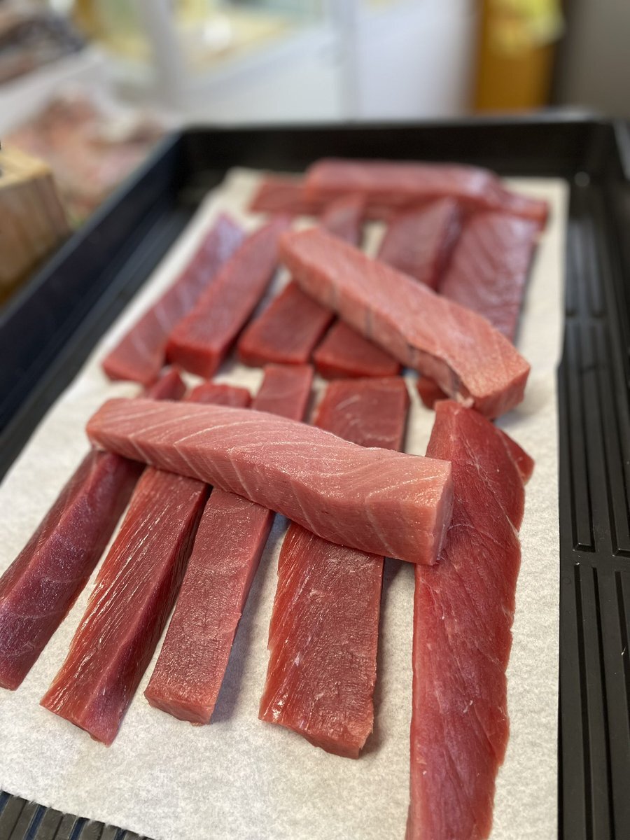 栃木県宇都宮市 魚勝 ・マグロ ・ブリ マグロ500円、ブリ500円 マグロは重なってるので見た目より量も多く脂の甘みも感じられますが筋もそこそこ多いです この鮪で自家製ネギトロを作れば最高でしょうな! 鰤はいいね〜文句なしだわ #刺身 #鮮魚店 pic.x.com/qQv7GFV8cx