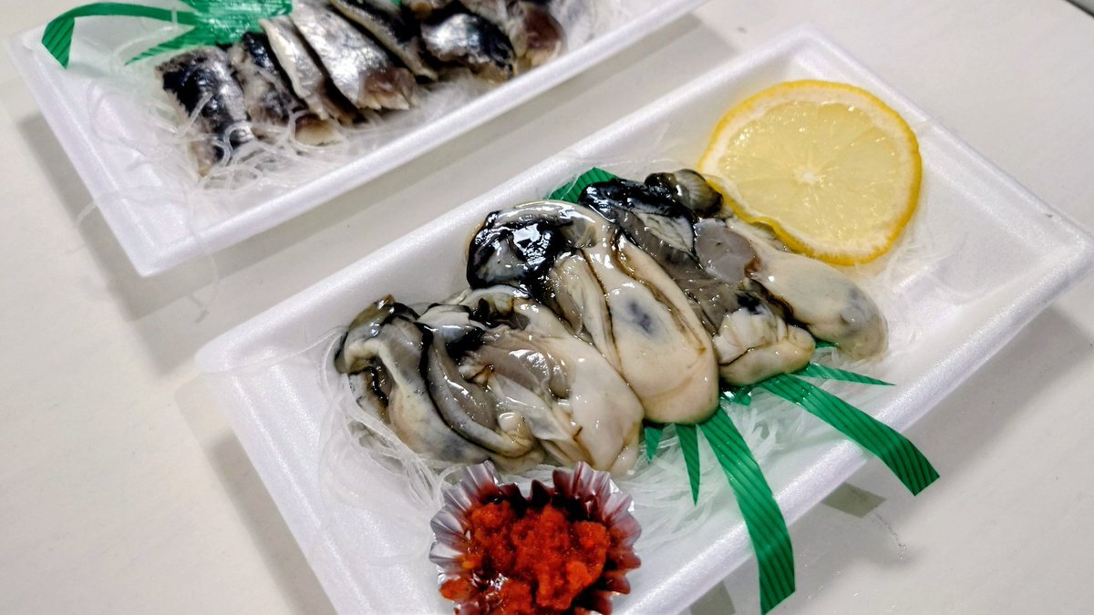 栃木県宇都宮市 魚勝 ・かわはぎ ・鯵のたたき ・生牡蠣 ・鰯の酢締め これで1500円だからなぁ…ありがてえ 14時〜マグロブツ販売の地元では有名店です #鮮魚店 #刺身 pic.x.com/mZxWcFhOy1