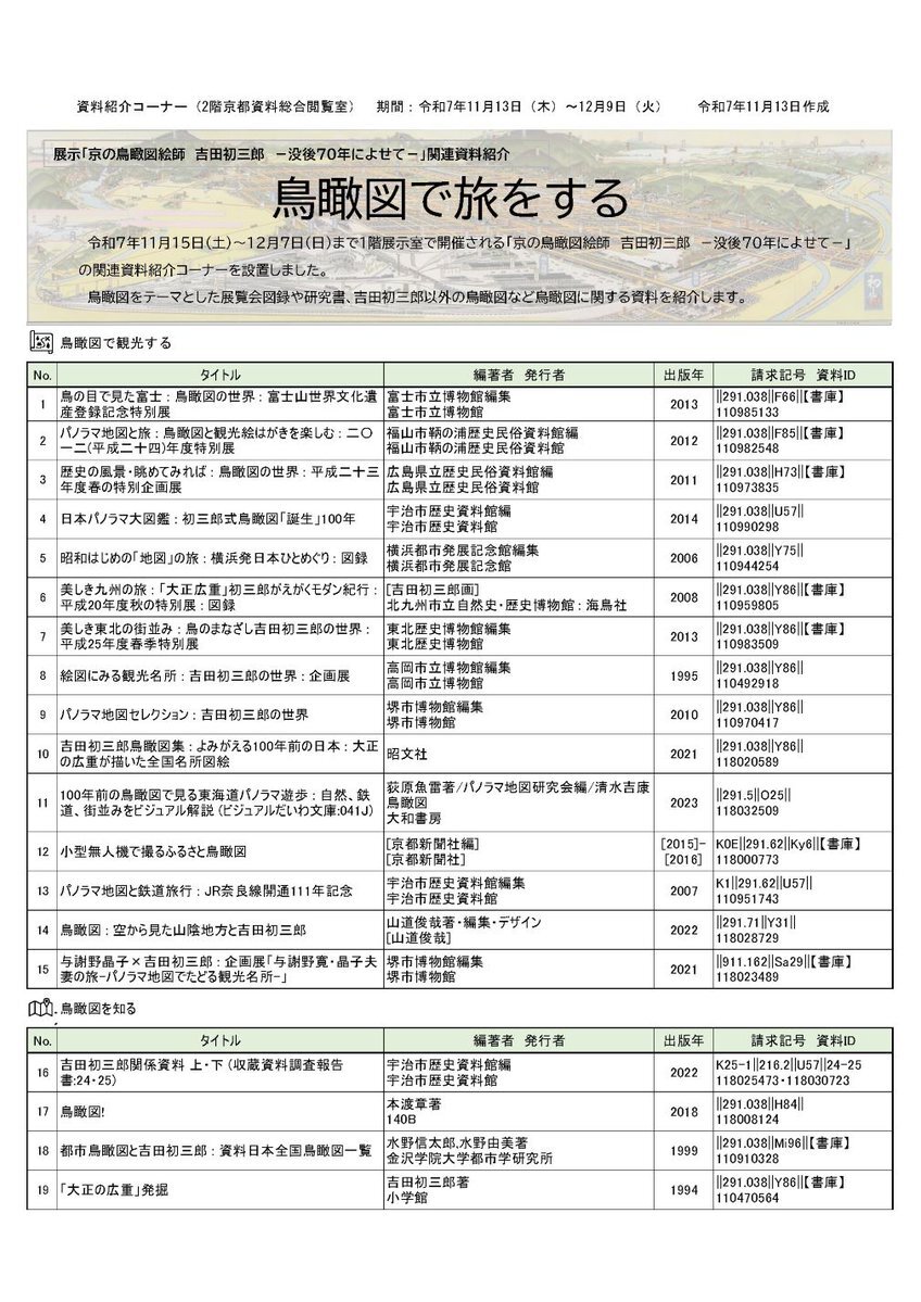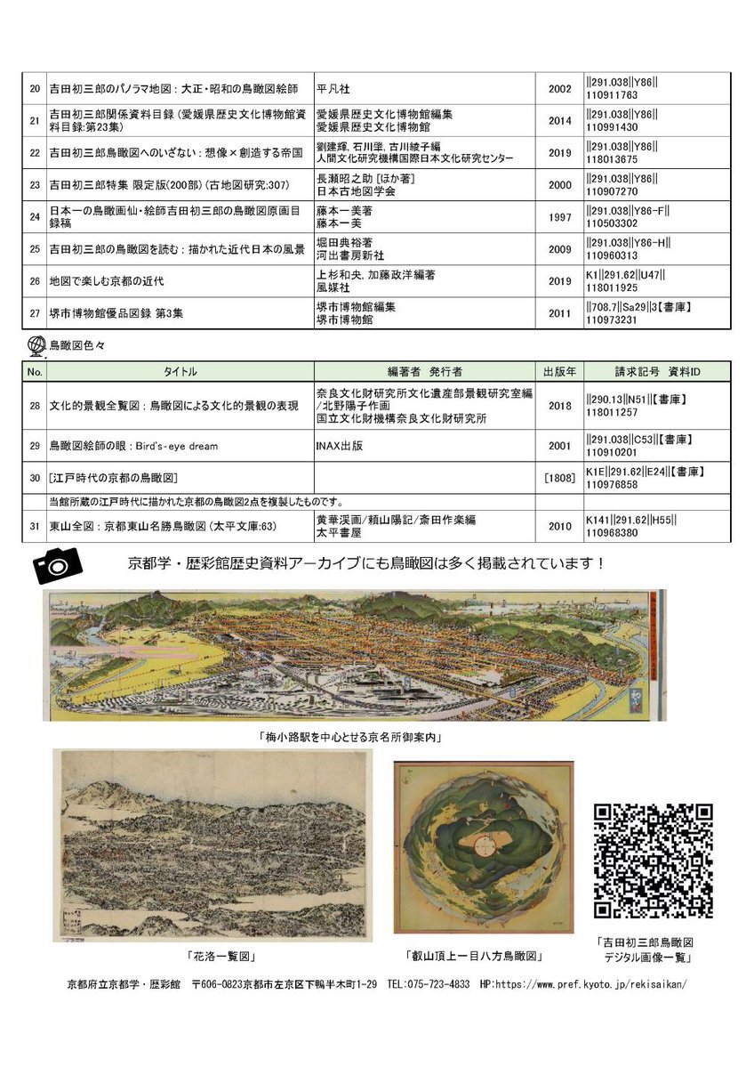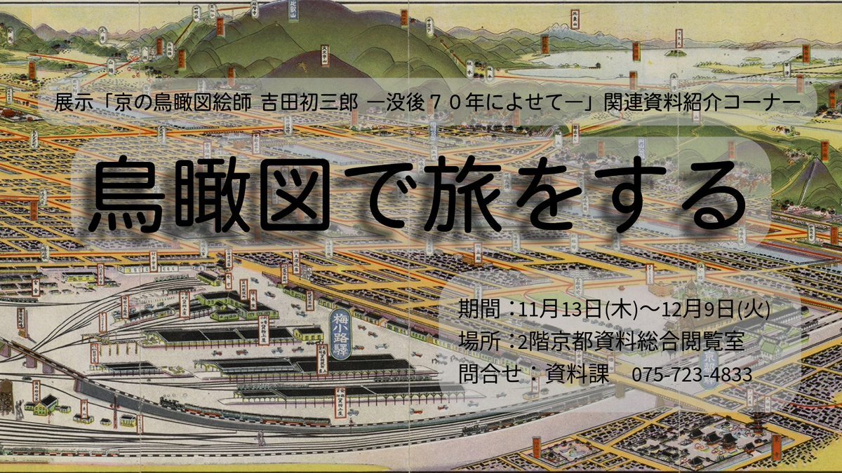 11月15日(土)から1階展示室で開催される「京の鳥瞰図絵師 吉田初三郎 -没後70年によせて-」展の#関連資料紹介コーナー を、2階閲覧室に11月13日(木)から12月9日(火)まで設置します。鳥になった気分で、全国を旅してみませんか。#歴彩館 #鳥瞰図 pic.x.com/cCOXpl3Woy