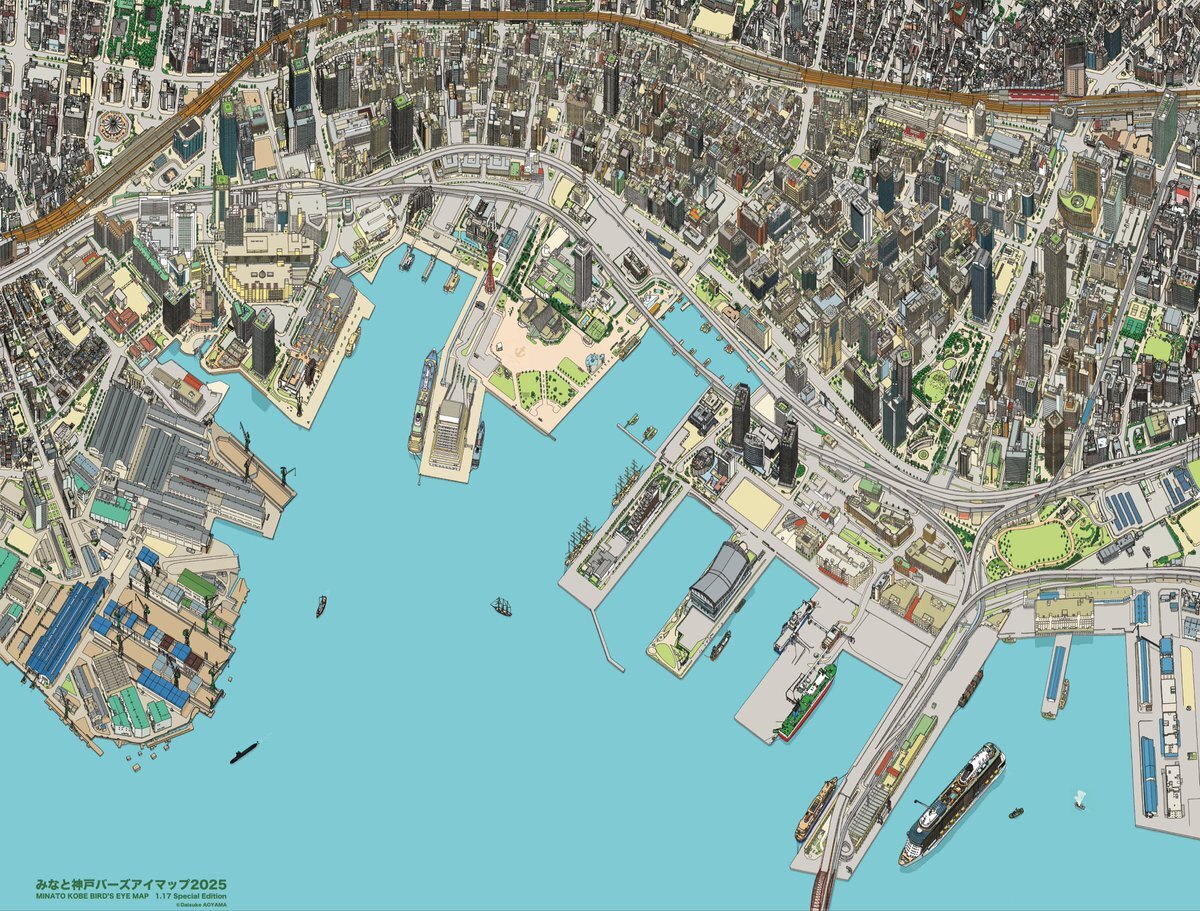 「みなと神戸バーズアイマップ2025〜1.17特別版」完成しました。 100年先の神戸市民へのプレゼント🎁です #鳥瞰図 #鳥瞰図絵師 #神戸 #みなと神戸バーズアイマップ2025 #みなと神戸バーズアイマップシリーズ #震災30年改訂 #鳥瞰図を未来に残す #神戸の姿を未来に #手描き鳥瞰図 pic.x.com/xET5Gh77Tw