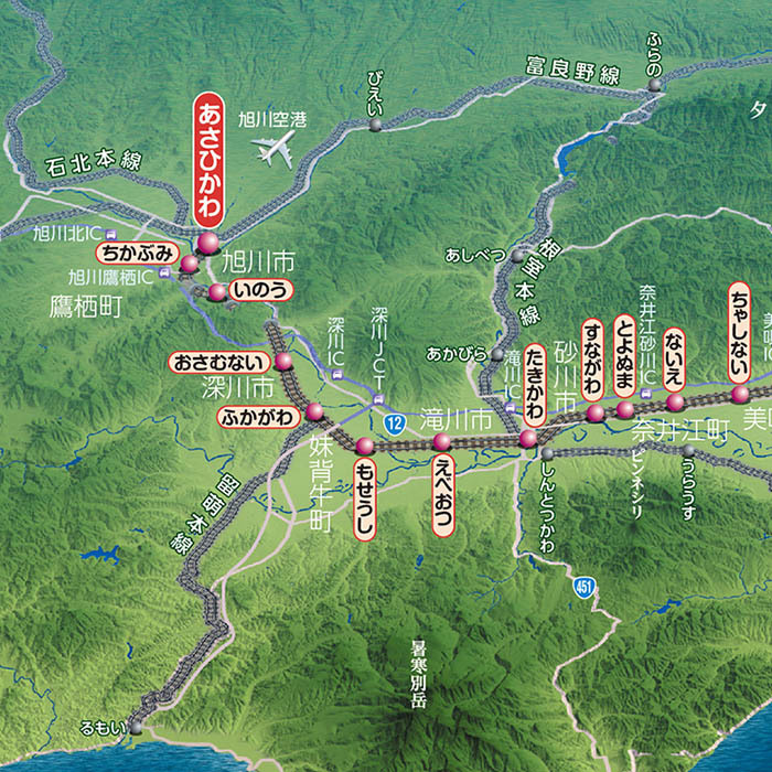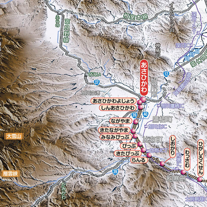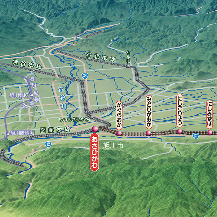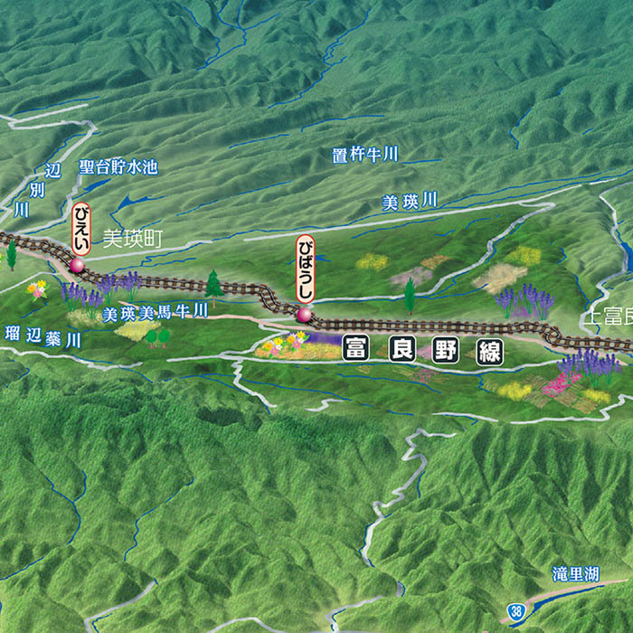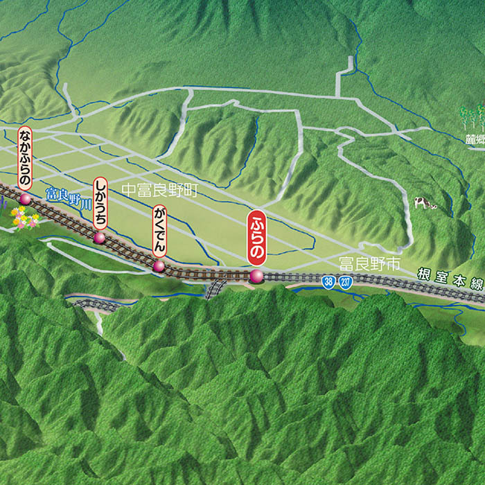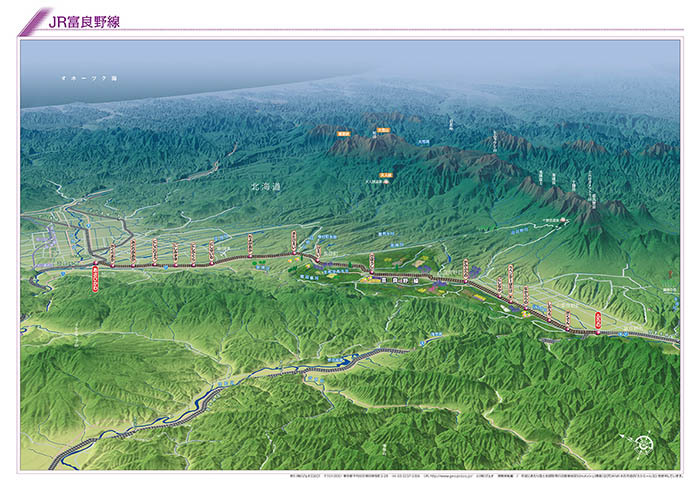 #JR富良野線 は旭川駅〜富良野駅およそ55kmを走る北海道を代表する観光路線です。ラベンダーをはじめとする花畑や丘の風景などを楽しみながら走る様子がよくわかる鉄道鳥瞰図です。 鳥の目線でJR富良野線を眺めてみませんか? 詳細は⇒geoprd.official.ec/items/5678521 #鳥瞰図 pic.x.com/8ZtKnM0Xnt
