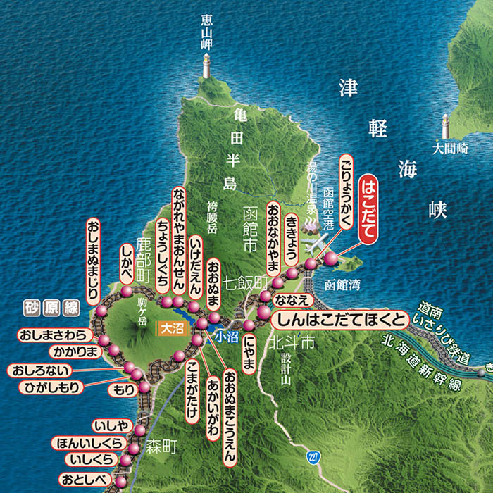 #JR函館本線 は函館駅〜旭川駅およそ423kmを走る路線です。大沼駅〜森駅およそ35kmを走る砂原線という支線もあり、支線を含めたおよそ458kmは北海道で最長です。 鳥の目線で函館本線を眺めてみませんか? 詳細は⇒geoprd.official.ec/items/5678526 #鳥瞰図 pic.x.com/LDddcd6ykk