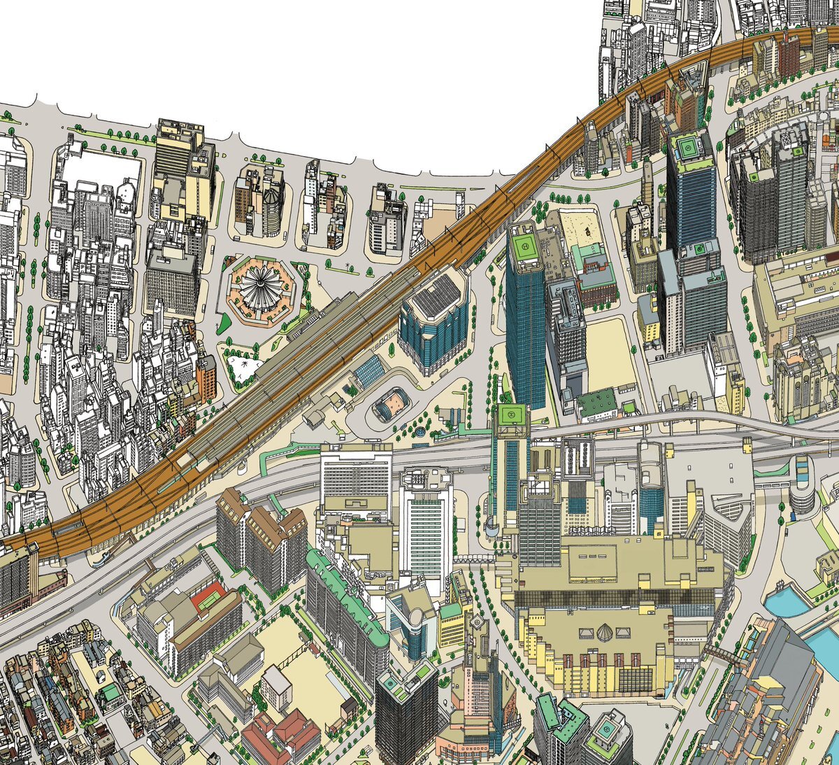高架線より山側の着彩作業。一応この範囲内は完了した。 #鳥瞰図 #鳥瞰図絵師 #神戸 #みなと神戸バーズアイマップ2025 #みなと神戸バーズアイマップシリーズ #震災30年改訂 #鳥瞰図を未来に残す #神戸の姿を未来に #手描き鳥瞰図 #鳥瞰図は未来の市民へのプレゼント pic.x.com/oWuvTZ0Npj