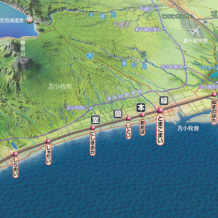#JR室蘭本線 は長万部駅〜岩見沢駅およそ211kmを走る路線で、東室蘭駅〜室蘭駅およそ7kmを走る支線もあります。 内浦湾・太平洋沿いを走り内陸の岩見沢まで北上する様子がわかる鉄道鳥瞰図です。 鳥の目線で室蘭本線を眺めませんか? 詳細は⇒geoprd.official.ec/items/5678556 #鳥瞰図 pic.x.com/ClGUqNZgLK