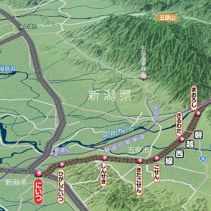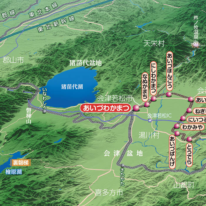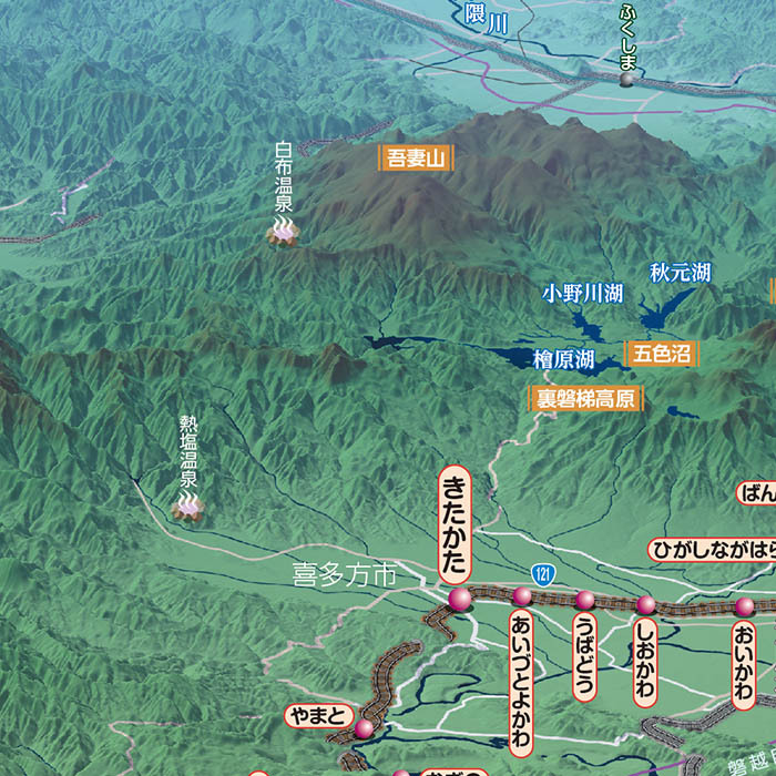 #JR磐越西線 は郡山駅〜新津駅およそ175kmを走る路線です。 磐梯山や猪苗代湖付近を通り、山間部を越えて新津駅まで走る様子がよくわかる鉄道鳥瞰図です。 鳥の目線で磐越西線を眺めてみませんか❓ 詳細は⇒geoprd.official.ec/items/5678581 #鳥瞰図 pic.x.com/vISp35O5fH