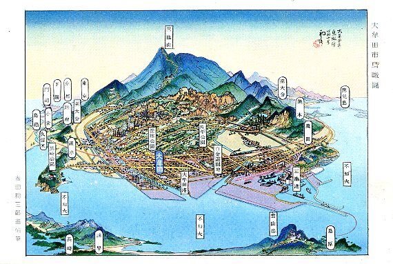🔷大牟田市鳥瞰図 吉田初三郎画伯筆(大牟田市役所発行) 三池炭鉱絵葉書3️⃣ #三池炭鉱 #吉田初三郎 #絵葉書 #鳥瞰図 #大牟田市