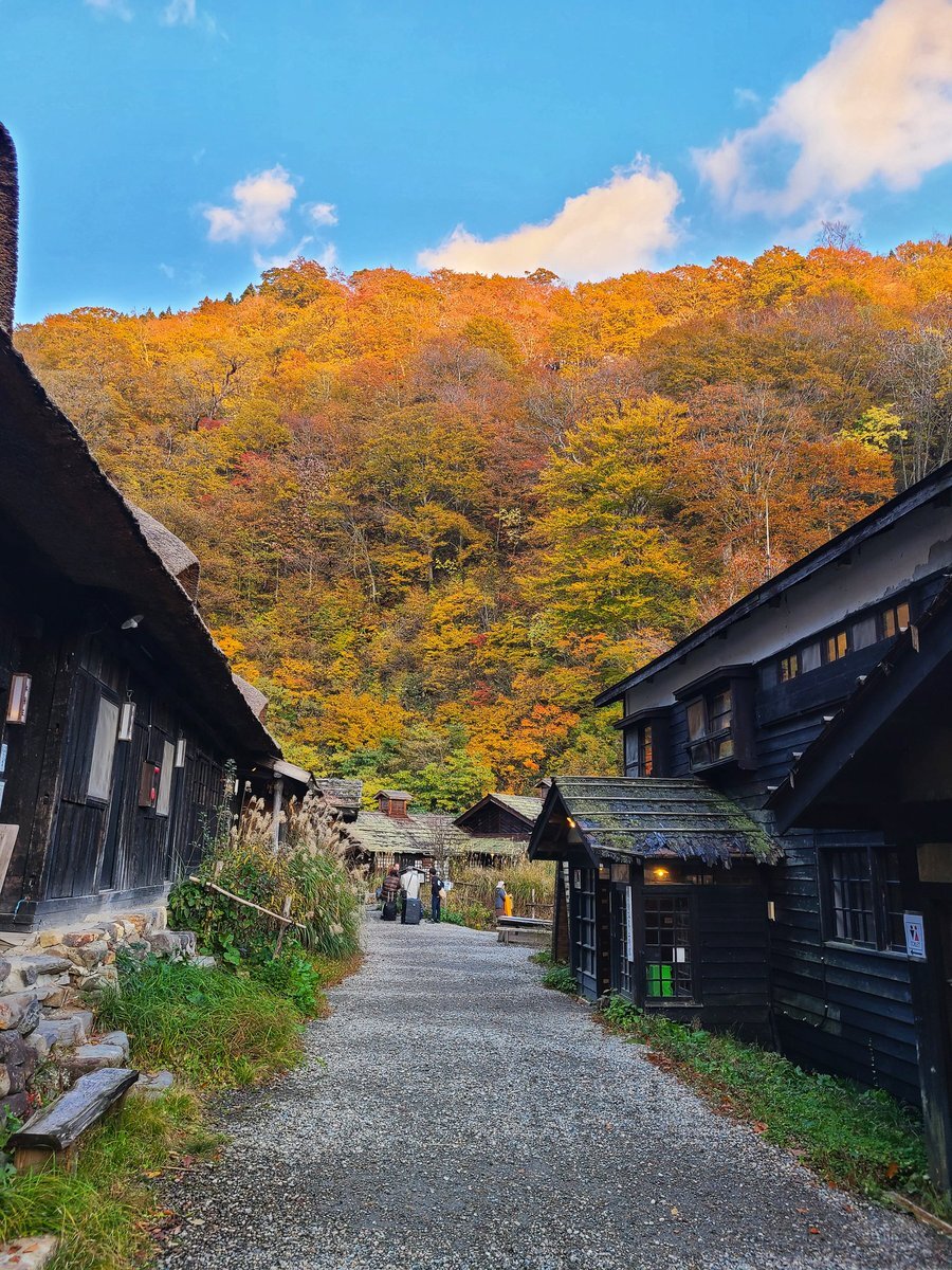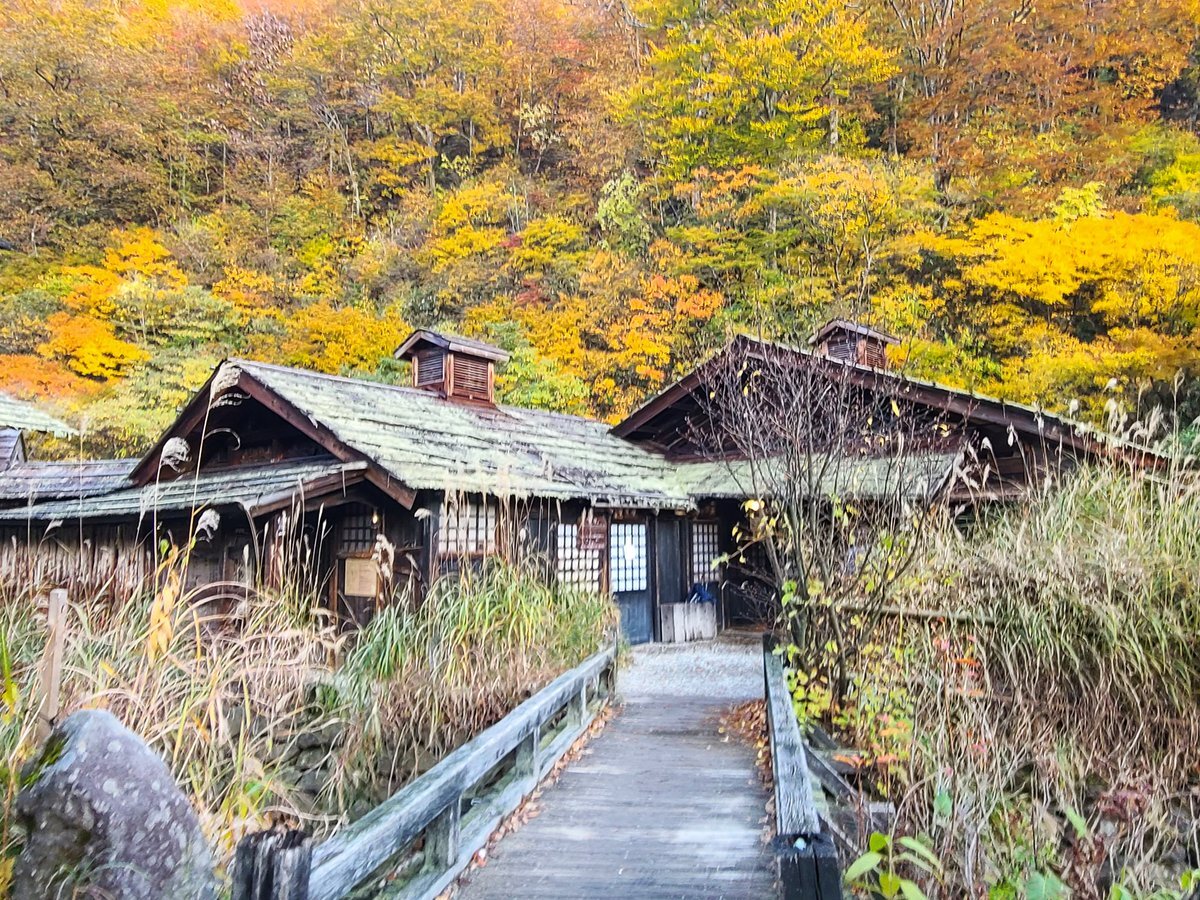 #温泉 #乳頭温泉 #鶴の湯 温泉雑誌やテレビ番組によく登場する 有名な秘湯 青空を見上げながら 白濁した硫黄泉の露天風呂でゆったり 茅葺き屋根の本陣の前には 残り雪 pic.x.com/S7Wpn0uklI