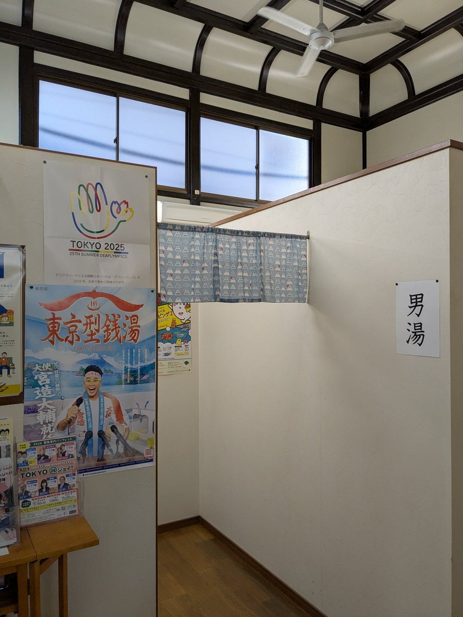 きょうのお風呂屋さんは台東区浅草橋の「鶴の湯」。深湯で温まっていると浅湯の端で地元の方が端唄か何かを唸っている。ジェットの音で聴き取りづらいが気持ち良さそう。目線の先には竹林を模した様な3基の立ちシャ。壁や床のタイルもアンティークで心安らぐ。棹縁天井も良き。 #鶴の湯 #台東区浅草橋 pic.x.com/Yoscxkf7pZ