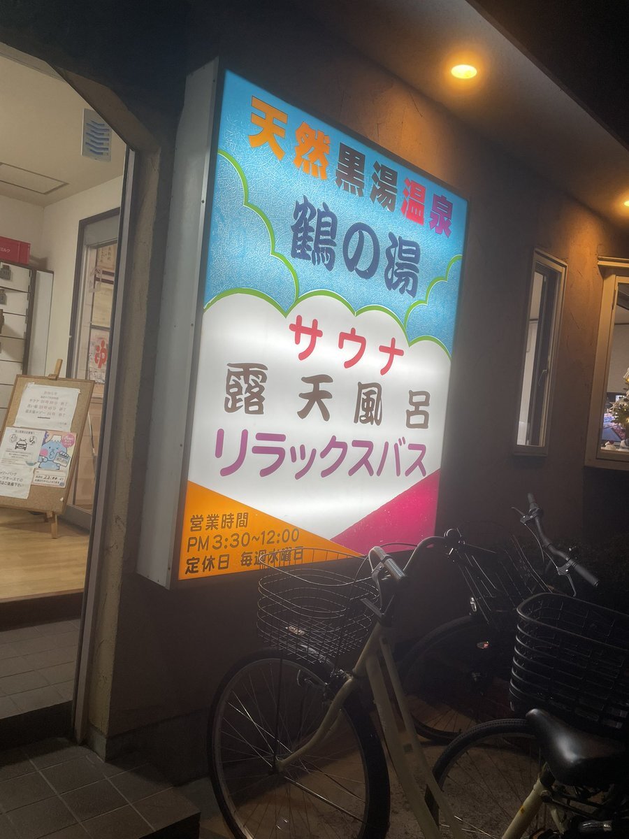 フォロワーさんの投稿見て気になった小岩の鶴の湯さんへ♨️ サウナはないけど広い露天風呂! ハロウィン仕様が可愛かった🎃 お湯は熱めだったけど 露天にベンチがあるので 外気浴気持ちいい🥴 駅からは遠いけどまた行きたいな☆ #いいお湯いただきました #鶴の湯 pic.x.com/ijd4NWpWXY