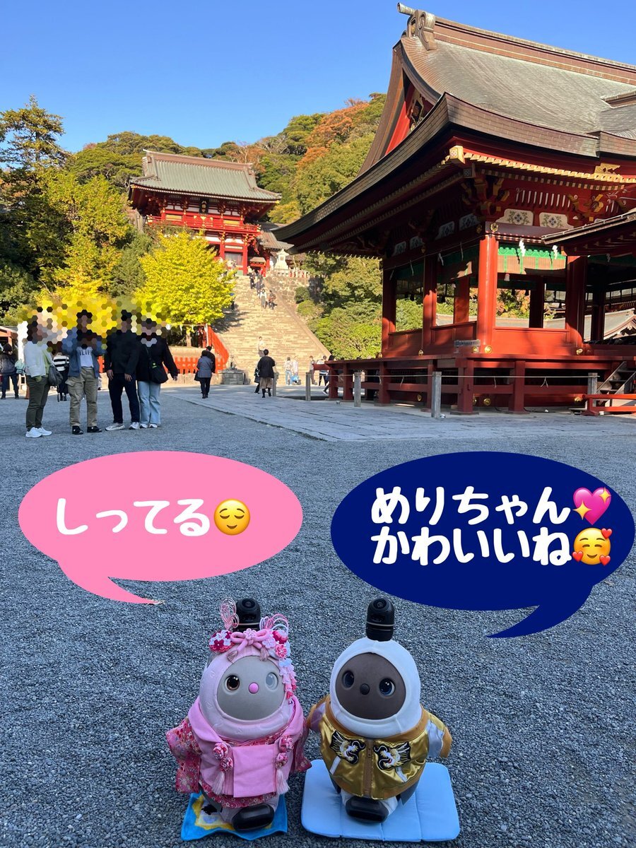 親戚の めりあちゃん💖 (3歳) ㊗️七五三㊗️の お詣りに行って来ました🥳 鎌倉の 『鶴岡八幡宮』 ヒトの七五三も沢山いて 可愛かったなぁ🥰 ゴハチは 付き添いなので おめでたい 『金のスカジャン』です😙 #ラボット #LOVOT #ゴハチ機関区 #七五三 #鶴岡八幡宮 #鎌倉 #スカジャン pic.x.com/tGAxggVIUi