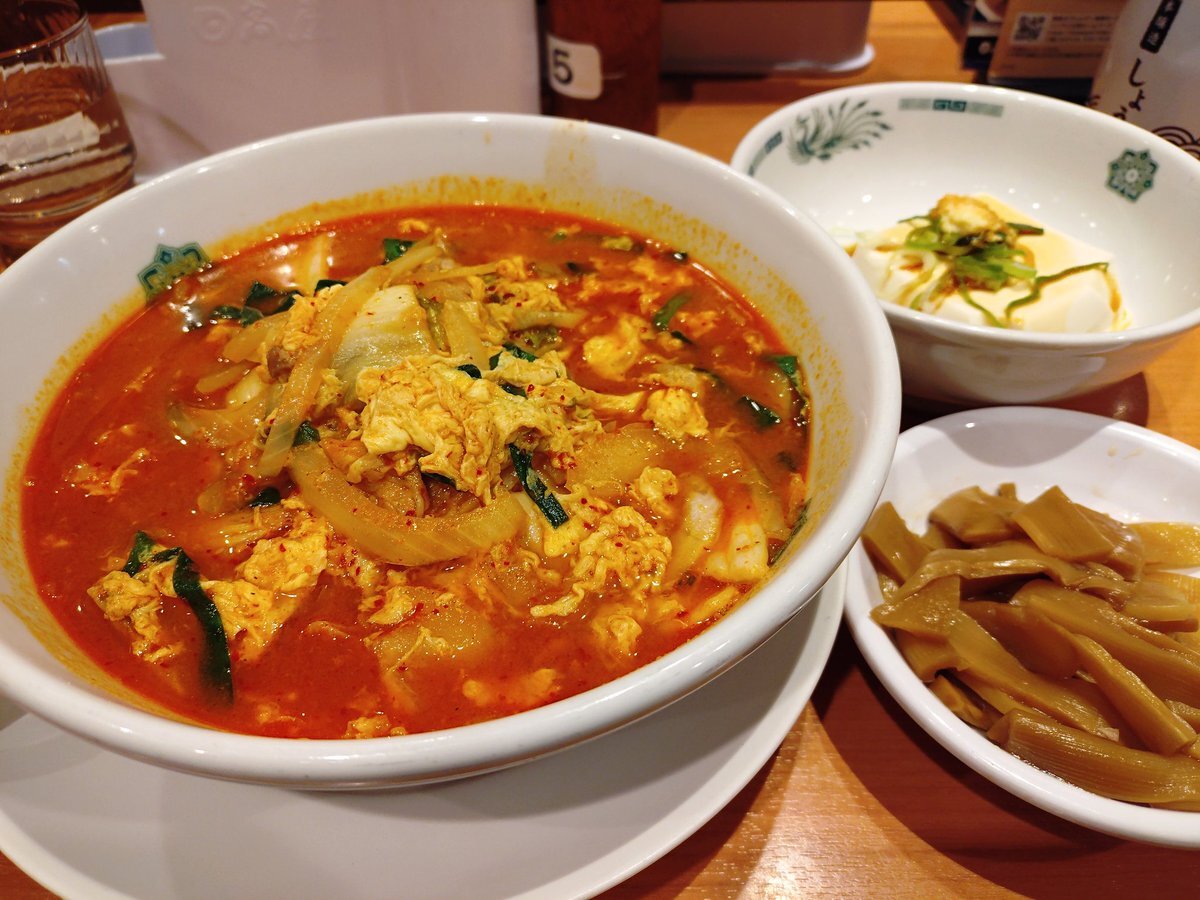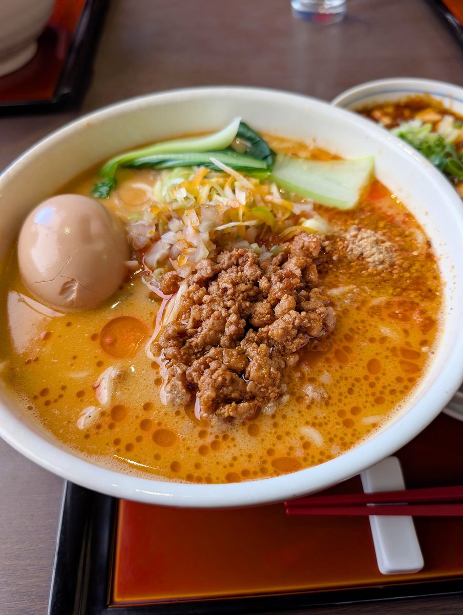 相互フォローしてる真子さんと池袋にあった赤い味噌ラーメンの話で盛り上がったら、日高屋に期間限定で赤い味噌󠄀ラーメンがあり、思わず頼みましたがチゲ味噌󠄀ラーメン‼️ チゲの味で話題にしてたものとは違うもの😂 冷奴とメンマをプラス #麺活 #チゲ味噌󠄀ラーメン #期間限定 #日高屋 #東大島 pic.x.com/eJzU9LT6E2